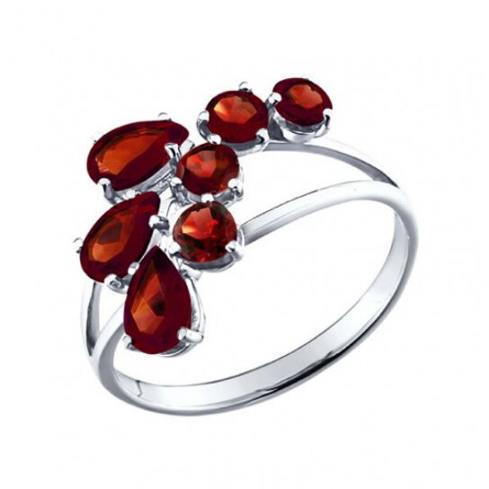 Кольцо из серебра с гранатами 92010014 17.5