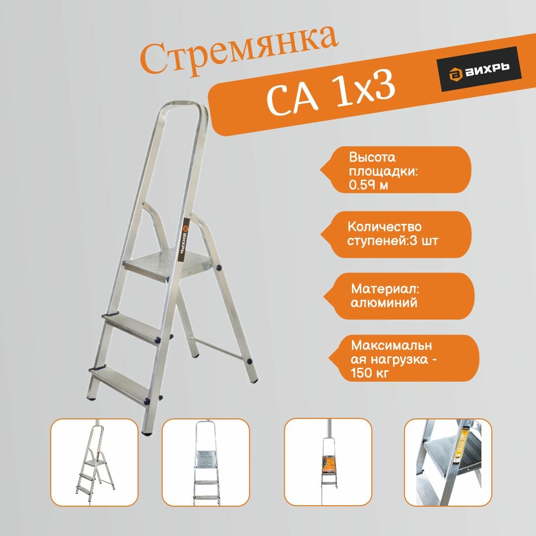 Стремянка алюминиевая вихрь СА 1х3
