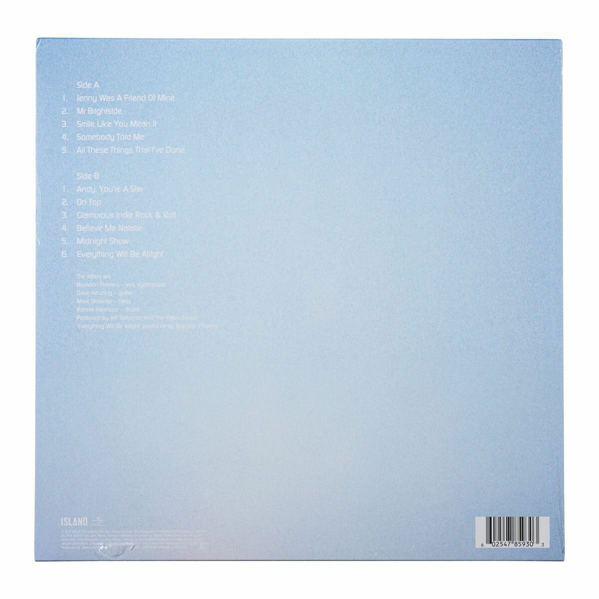 | Треклист | A1. Jenny Was A Friend Of Mine (4:04) A2. Mr. Brightside (3:43) A3. Smile Like You Mean It (3:54) A4. Somebody Told Me (3:18) A5. All These Things That I've Done (5:02) B1. Andy, You're A Star (3:14) B2. On Top (4:19) B3. Glamorous Indie Rock & Roll (3:11) B4. Believe Me Natalie (5:07) B5. Midnight Show (4:03) B6. Everything Will Be Alright (5:45) |