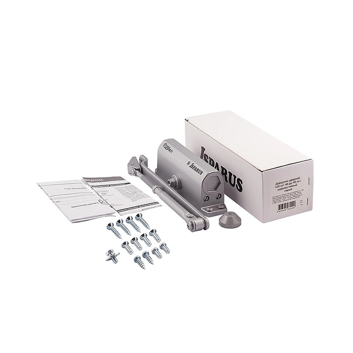 Доводчик дверной морозостойкий Нора-М Isparus 420, от 40 до 90 кг, серебро
