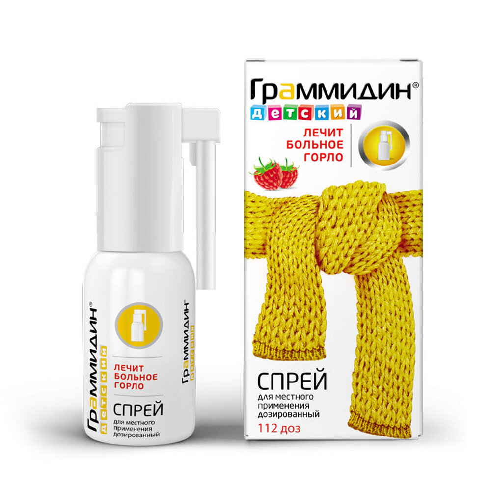 Граммидин детский спрей дозир. для местн. прим. 0,03мг+0,1мг/доза фл. 112 доз