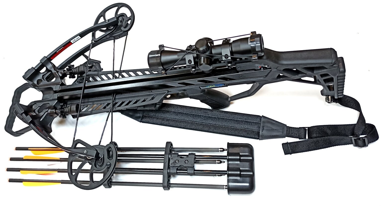 | Подробная комплектация | арбалет, воск, установленные виброгасители, продольный кивер на 4 стрелы, оптический прицел 4х32 с подсветкой шкал (красный / зеленый), ремен,ь 4 карбоновые стрелы 20", ручной натяжитель, сертификат |