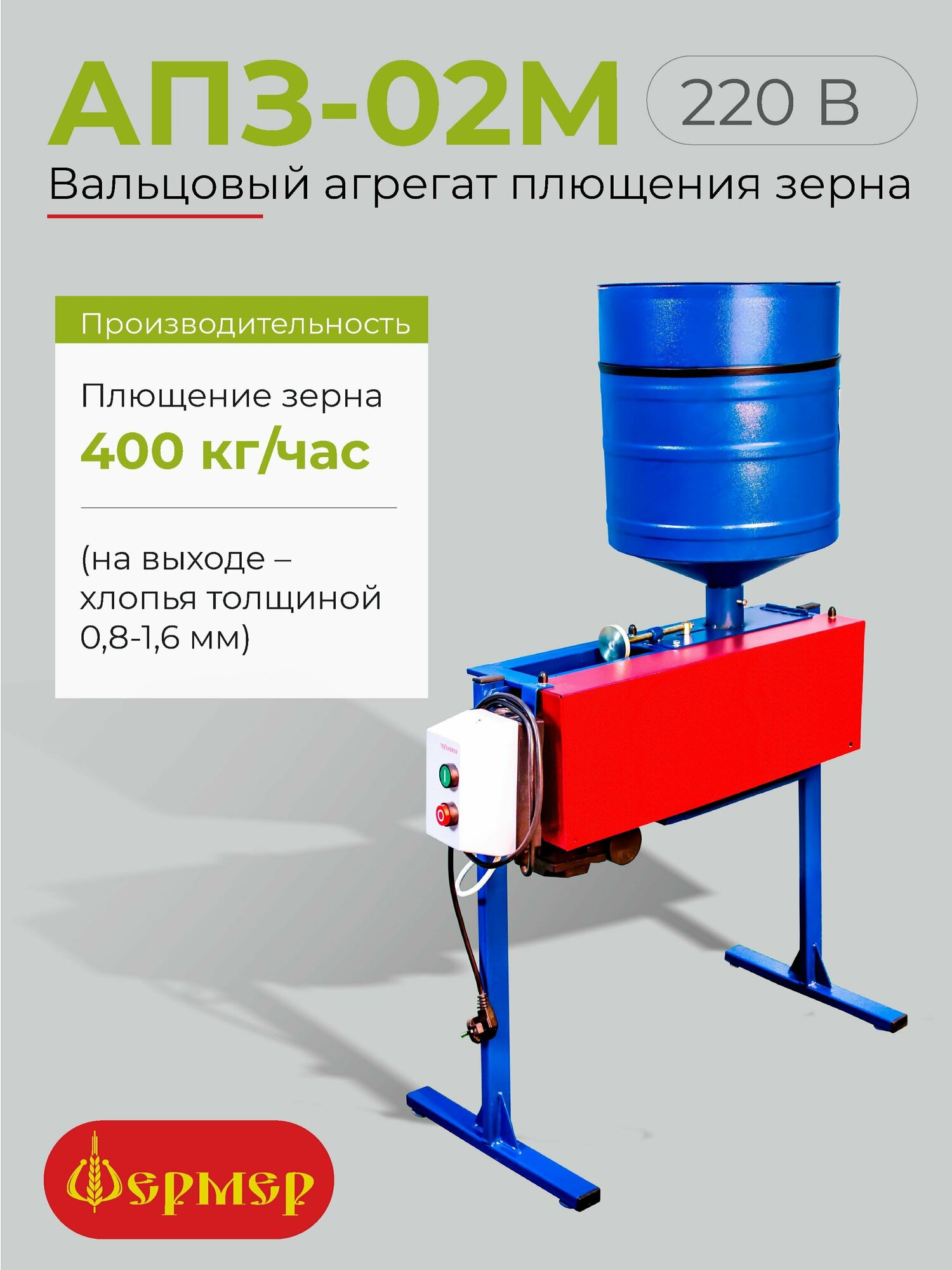 Агрегат для плющения Фермер АПЗ-02М, сталь, 400кг/ч, 2кВт, 5мм