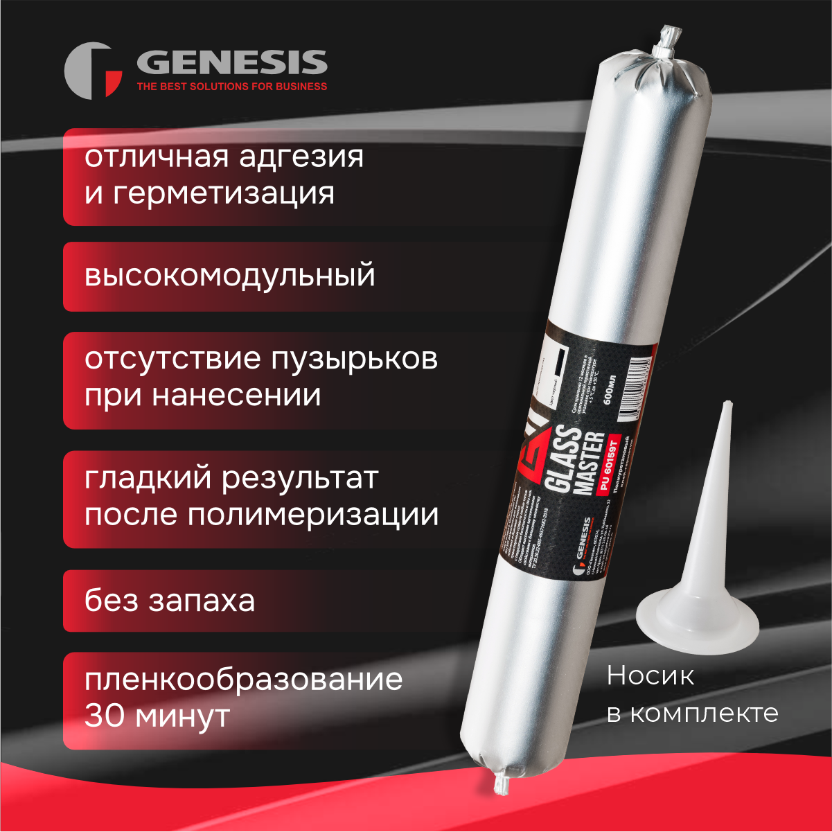 Клей для вклейки стекол GLASSMASTER PU 60159Т, черный 600 мл/автомобильный клей герметик интересное: