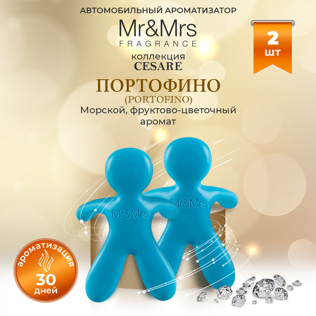 Купить Ароматизатор для авто Mr&Mrs Fragrance Cesare PORTOFINO Портофино лазурно-голубой 2 шт