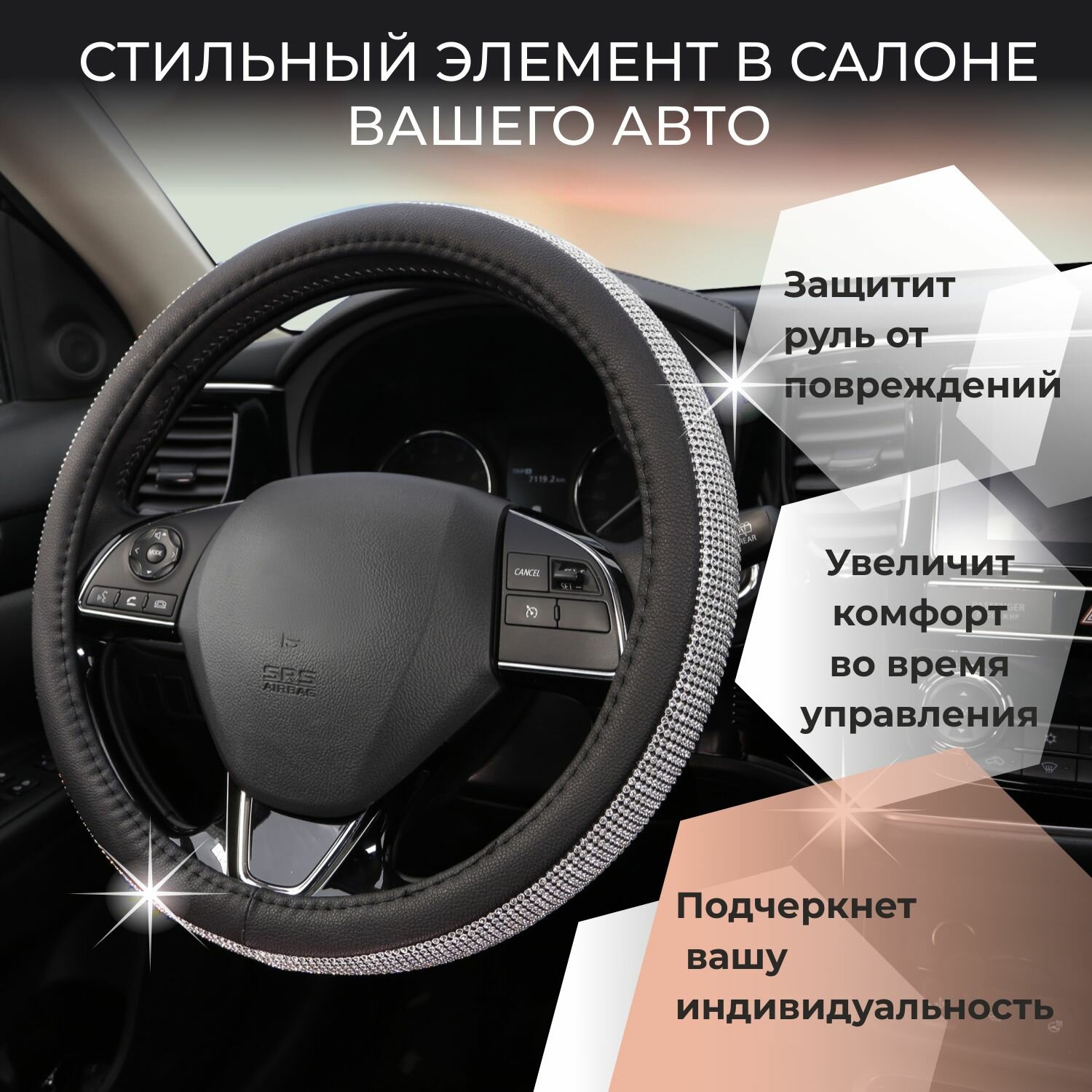Оплетка на руль 37-39 см (M) MONA LISA Twinkle чехол на руль автомобиля со стразами