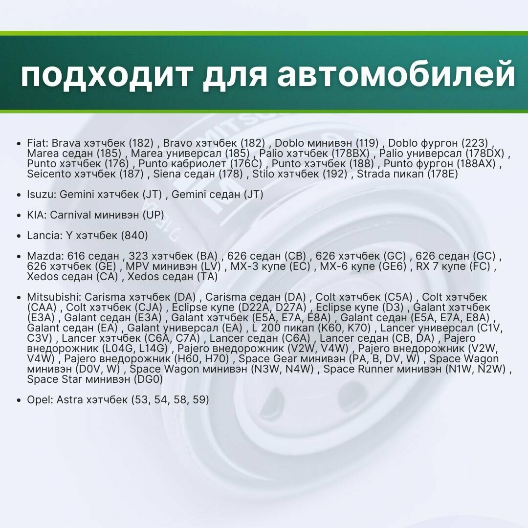 | Модель автомобиля | Ford Probe / Hyundai Solaris / Kia Rio Van / Kia Rio X-Line / Mazda 3 / Mazda 5 / Mazda 6 / Mazda 626 / Mazda Axela / Mitsubishi ASX / Mitsubishi Galant / Mitsubishi Lancer / Mitsubishi Outlander / Mitsubishi Pajero |