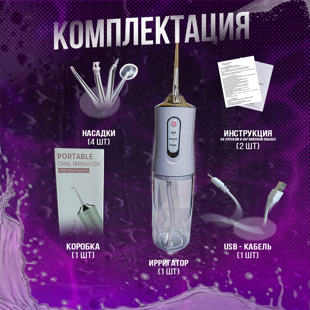Купить Ирригатор для зубов портативный с 4 насадками для полости рта и питанием от USB