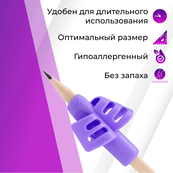 Тренажер для постановки письма / Насадка ручки для исправления почерка / Силиконовый держатель на ручку / Сиреневый