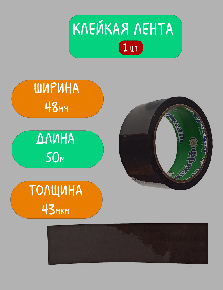 СохранитьКлейкая лента (скотч) черный, 1 шт, 48мм х 50м, 43мкм Фрегат интересное: