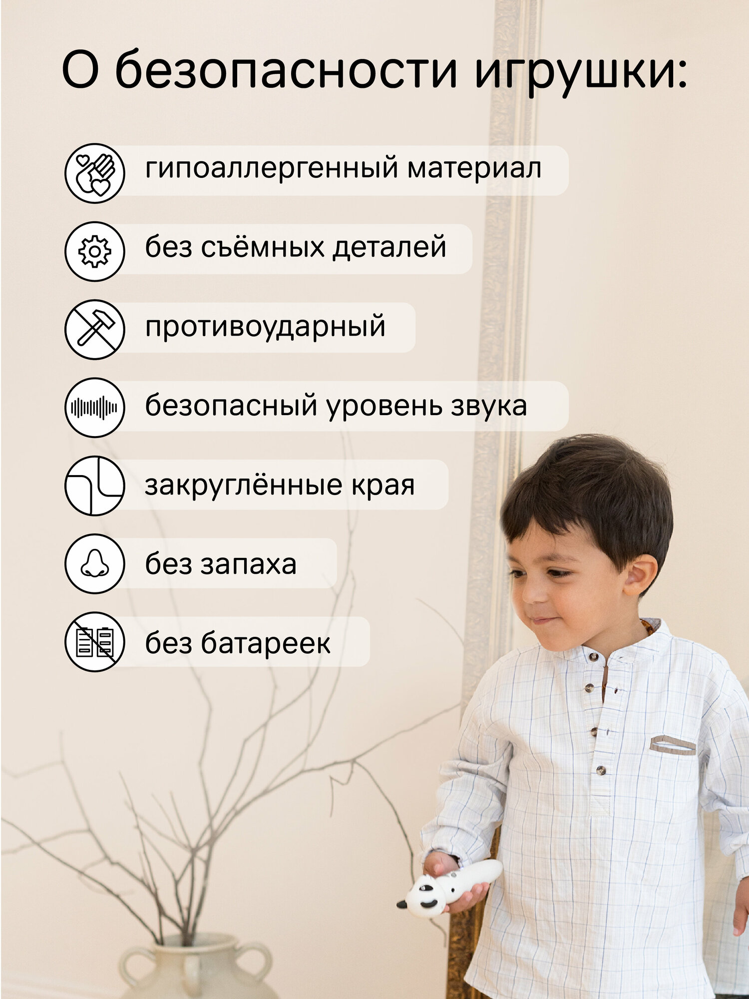 | Особенности | батарейки в комплекте / музыкальная / прорезыватель / управление со смартфона |