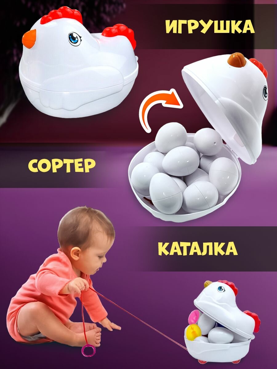 Сортер яйца и курица каталка для малышей, развивающая игрушка Wimi от 2 лет интересное: