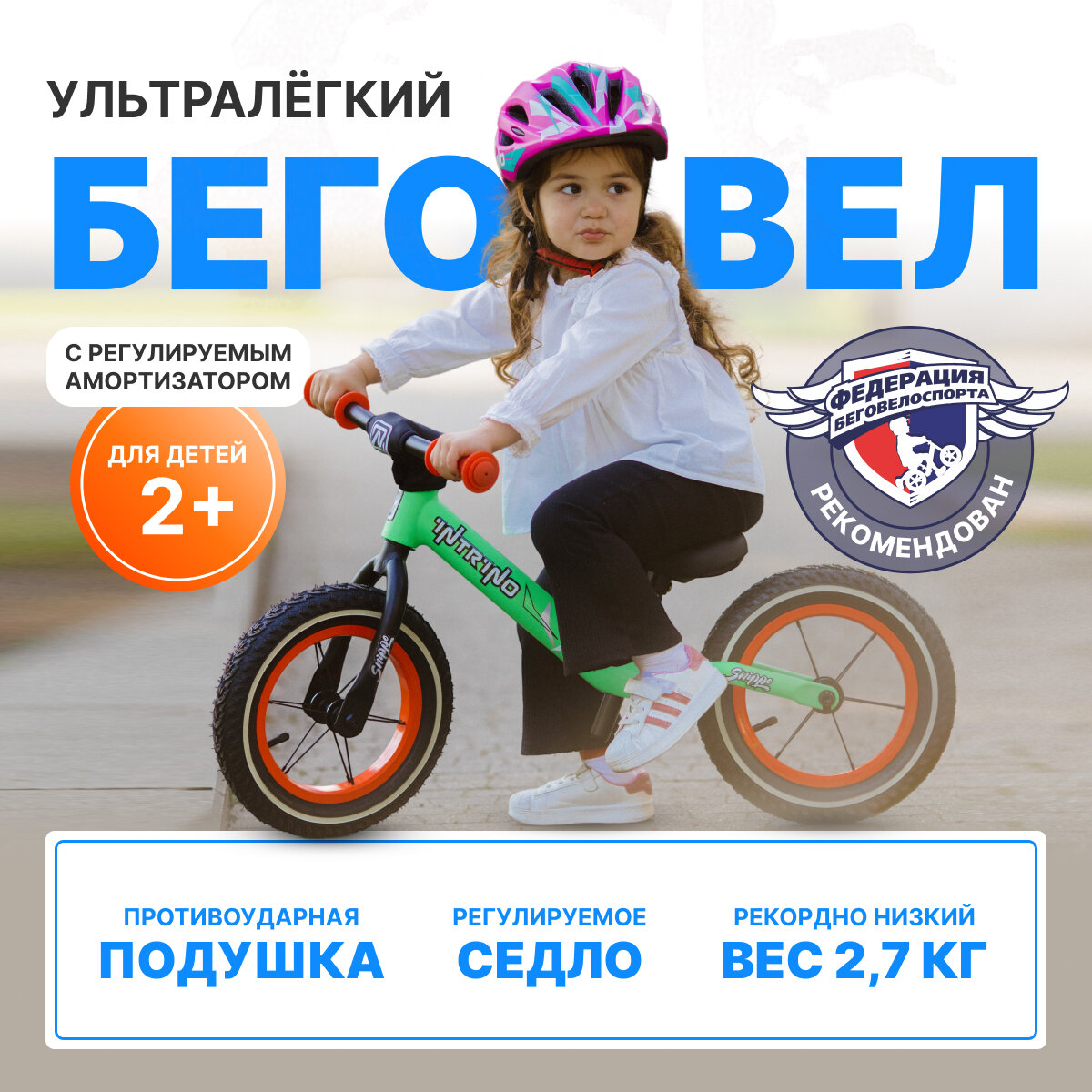 Беговел Intrino Snippo детский 2+ с амортизацией, прямой руль зелёный+красный