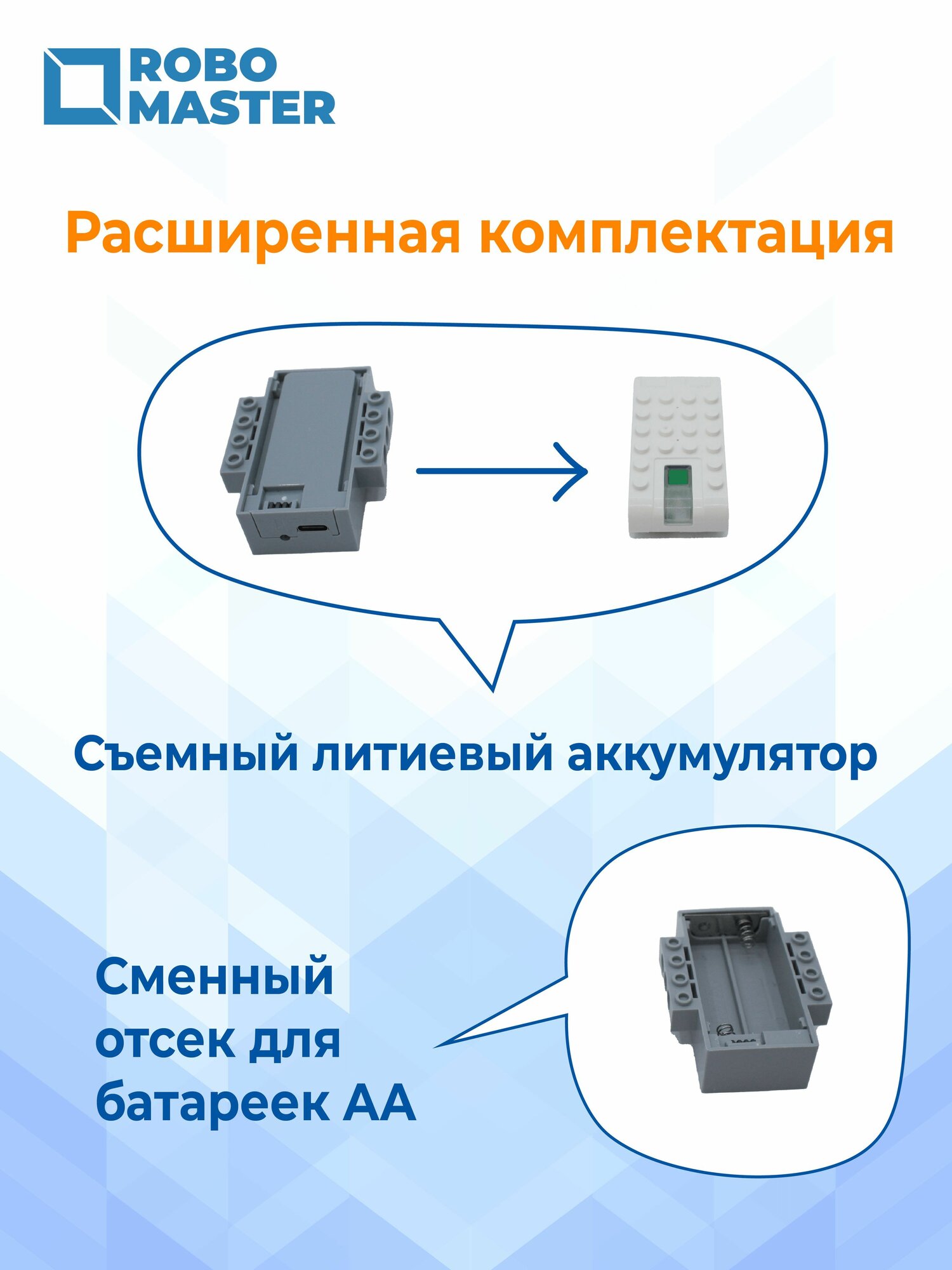 Базовый набор WeDo 2.0 (45300) Расширенная комплектация. Съемный аккумулятор + отсек для батареек. интересное: