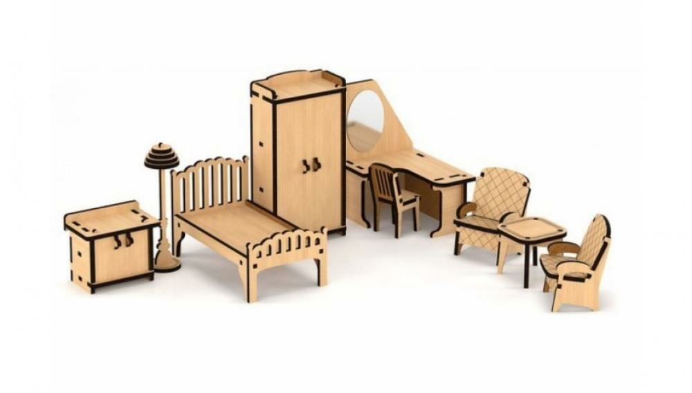 | Комплектация | сервант 117*60*35 мм, книжный шкаф 115*45*35 мм, диван 55*100*40 мм, тумбочка 47*55*35 мм, стенка под телевизор 118*112*35 мм, столик 35*40*40 мм, лампа 30*25*25 мм, журнальный столик 30*65*65 мм, телевизор 40*45*10 мм, наждачная бумага, клей ПВА, инструкция |
