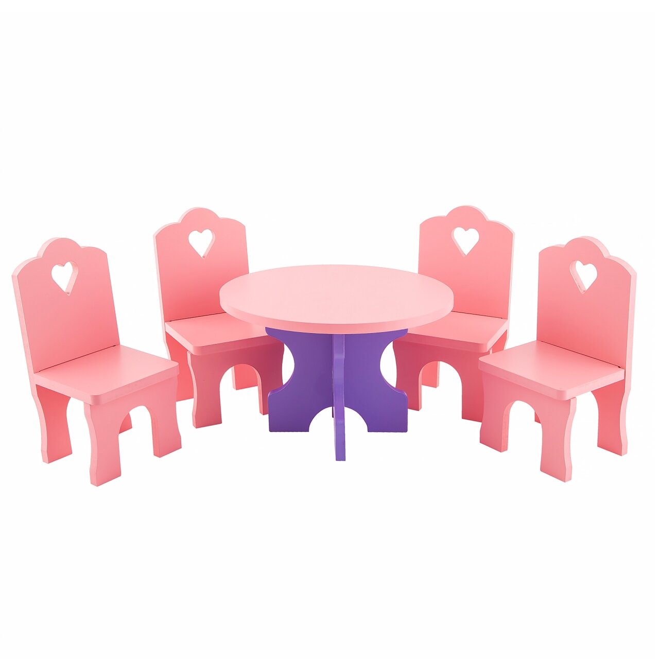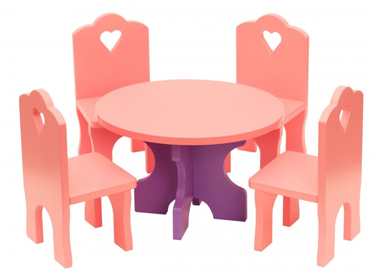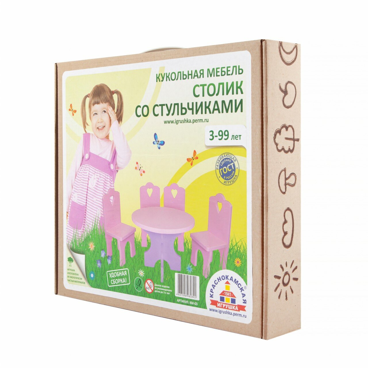Мебель для кукол Краснокамская игрушка Столик + 4 стульчика (деревянная) (КМ-03)