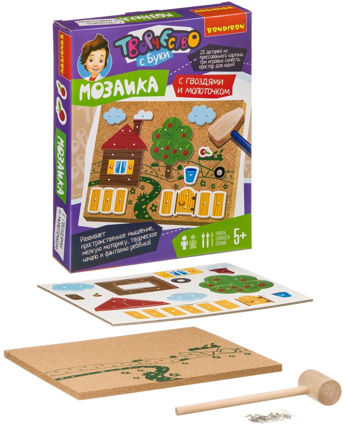 | Дополнительная информация | состав: пробковая основа, деревянный молоток, гвоздики, детали из прессованного картона, схема - инструкция |