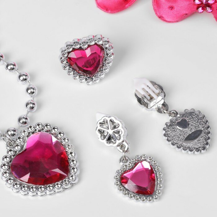 Комплект детский «Выбражулька» 5 предметов: 2 резинки, клипсы, кулон, кольцо, цвет малиновый интересное: