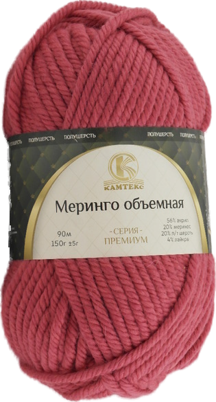 СохранитьПряжа Камтекс "Меринго объемная", цвет: 081 - Ягодный, 4 шт., Меринос 20%, Полутонкая Шерсть 20%, Акрил 56%, Лайкра 4%, 150 г 90 м интересное: