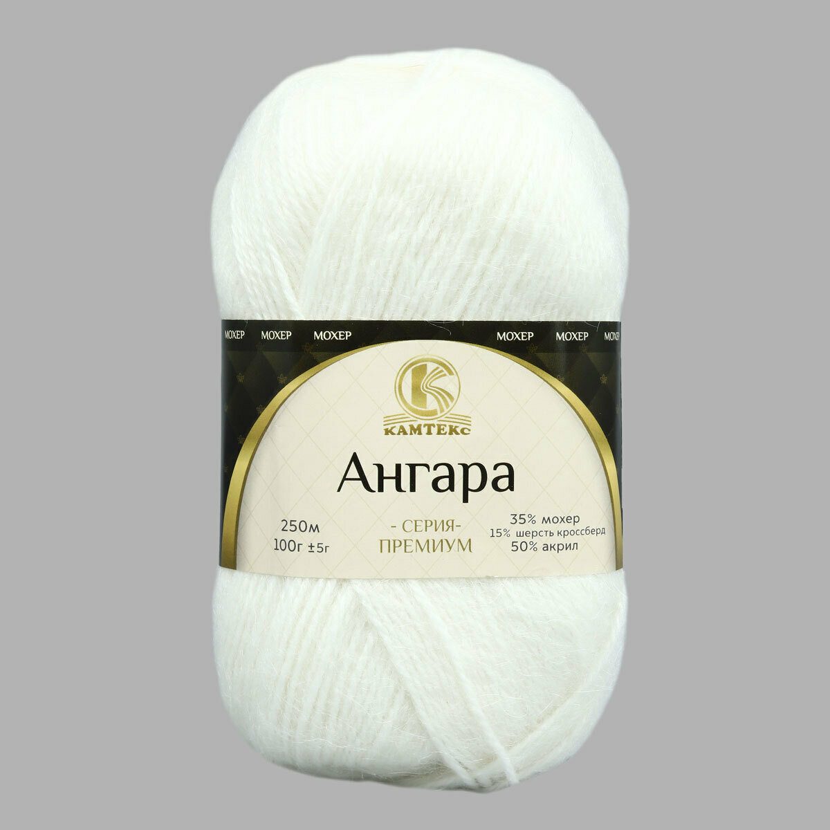 Пряжа для вязания Камтекс 'Ангара', 100 г, 250 м (35% мохер, 15% шерсть кроссбред, 50% акрил) (205 белый), 5 мотков
