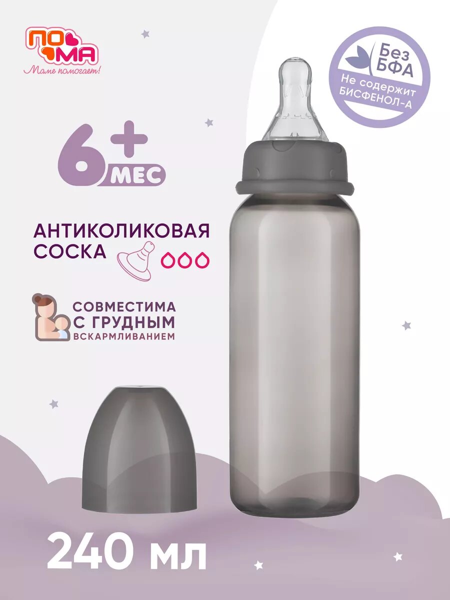 Бутылочка 240 мл, 1шт. (ПП, силикон, быстрый поток) 6+ 8810 интересное: