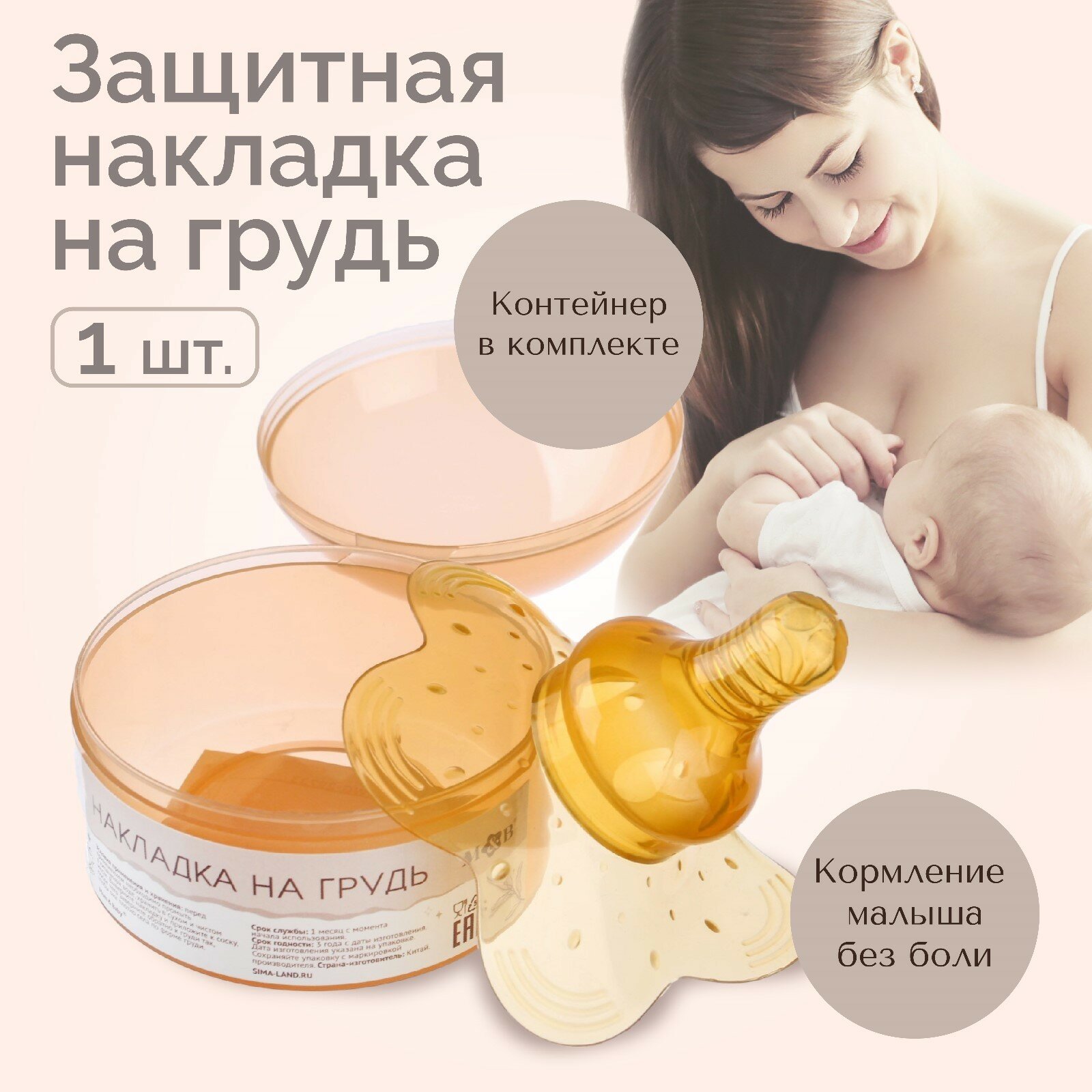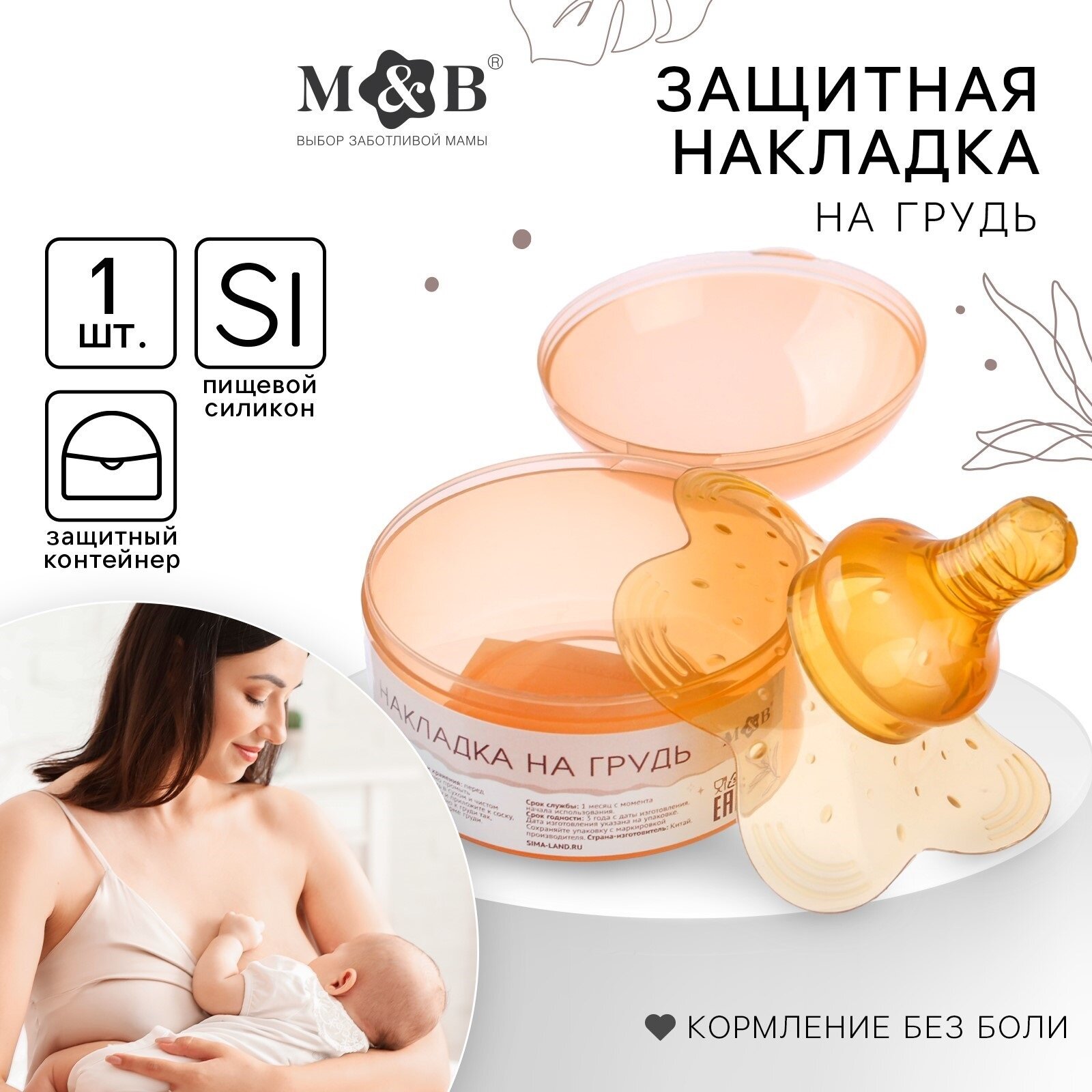 Купить Накладка на грудь для кормления, пищевой эластичный силикон, в контейнере, 1 шт., M&B