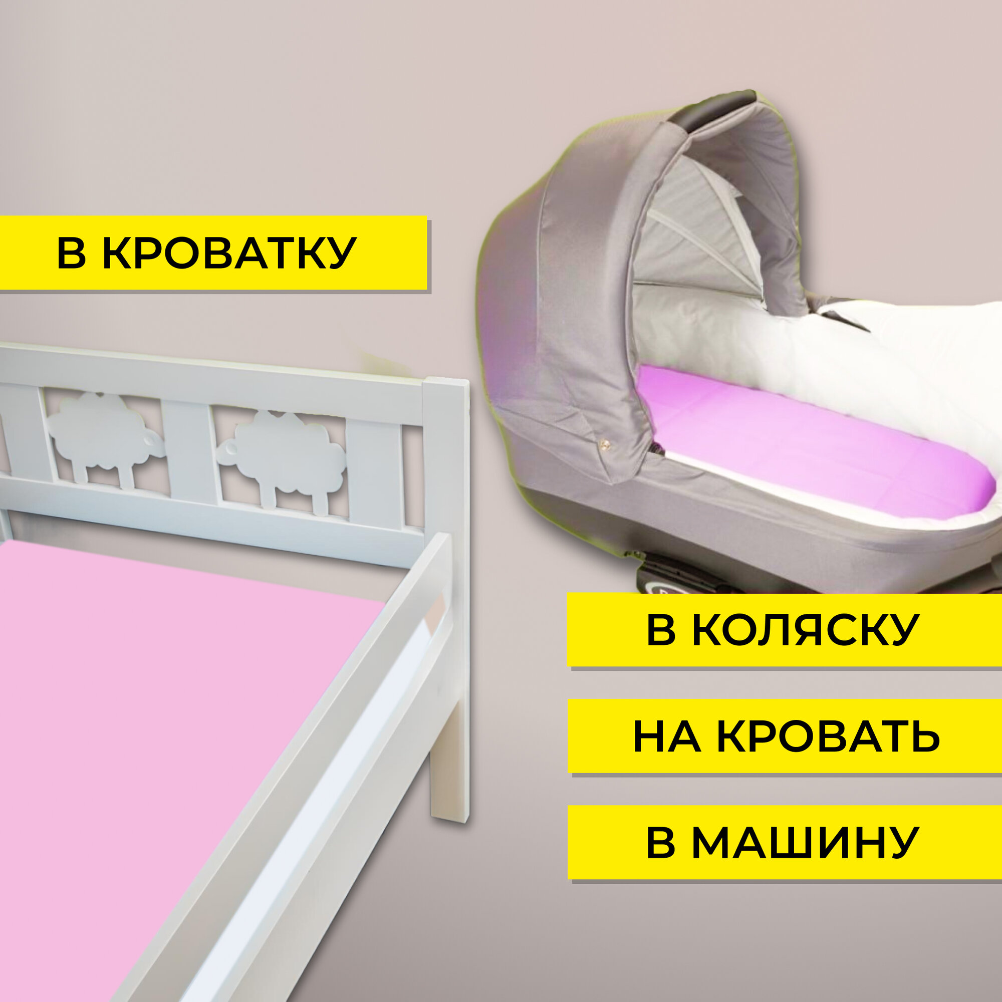 Клеенка детская непромокаемая в кроватку 100х70 см, розовая / Polikate