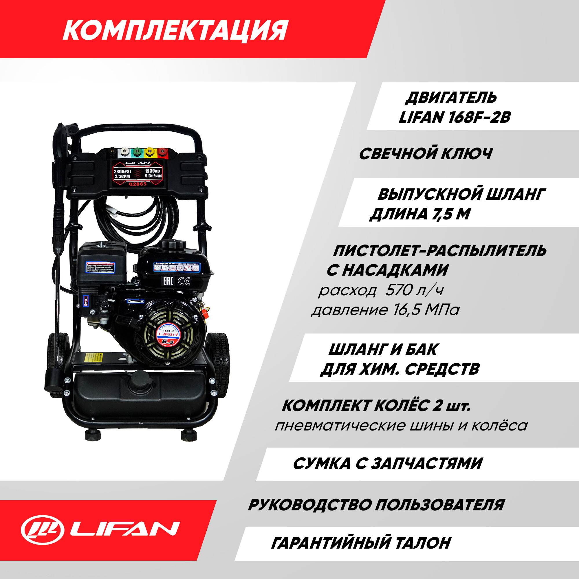 Ниже Вы можете прочитать отзывы на Мойка высокого давления бензиновая Lifan Q2865 (Lifan 168F-2B, 193 бар, 570 л/ч), ознакомится с подробными характеристиками, посмотреть интересные обзоры и фотографии на Мойка высокого давления бензиновая Lifan Q2865 (Lifan 168F-2B, 193 бар, 570 л/ч).