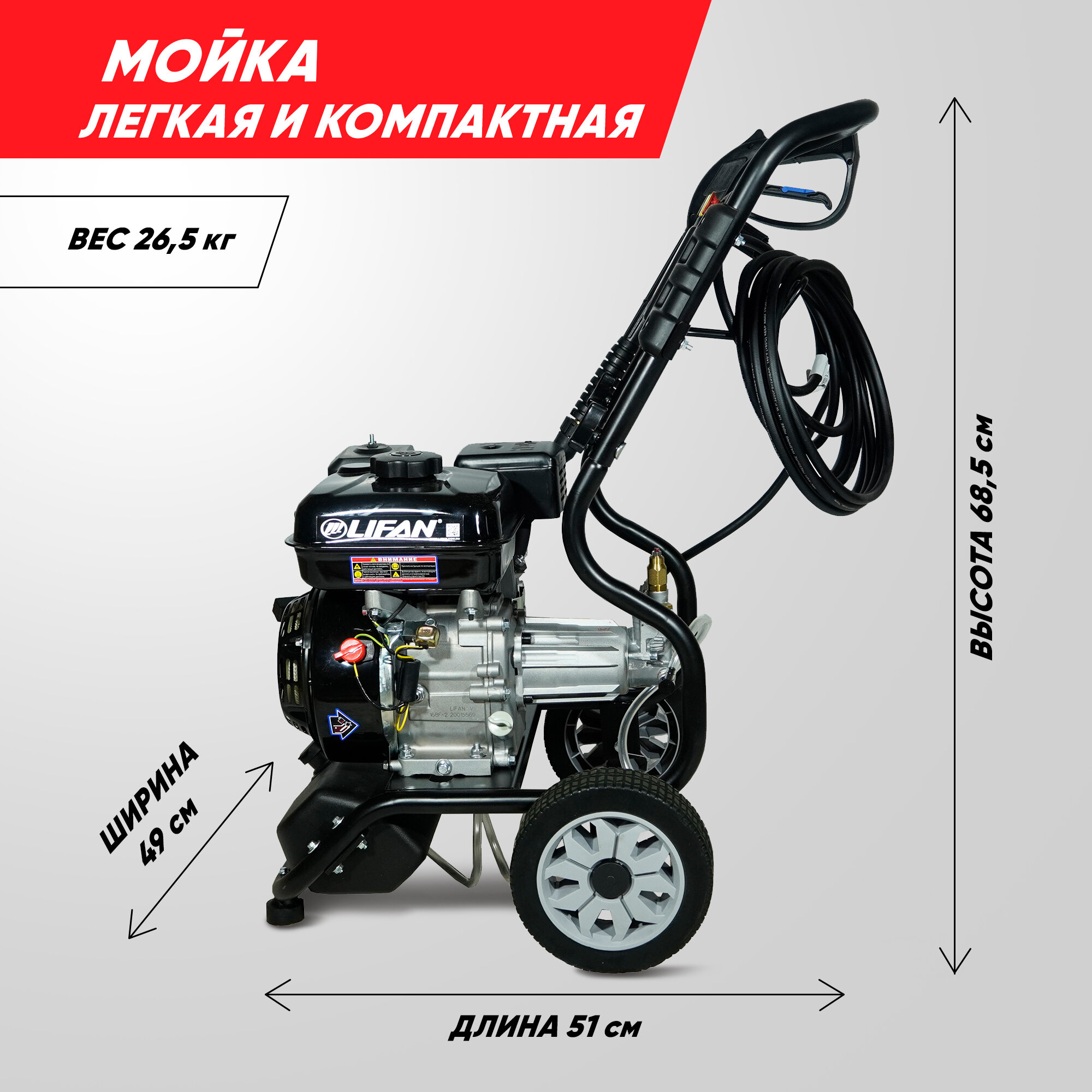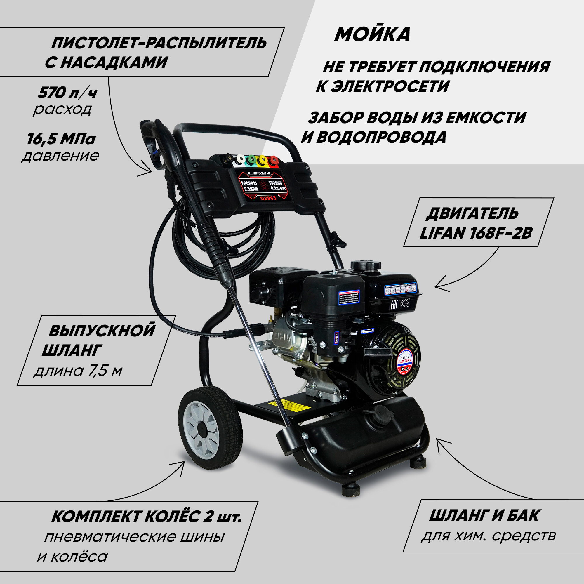 Купить Мойка высокого давления бензиновая Lifan Q2865 (Lifan 168F-2B, 193 бар, 570 л/ч)