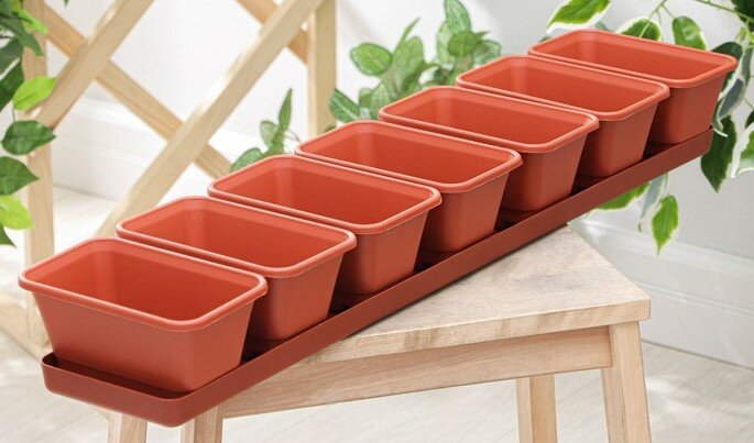 | Дополнительная информация | размер набора - 73 x 16,5 x 8,5 см; размер одного горшка - 16,5 x 8,5 см |