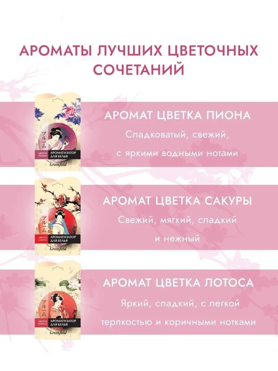 Ароматические саше для белья и шкафа, аромасаше от Greenfield с ароматом сакуры, пиона и лотоса, 3 штуки интересное: