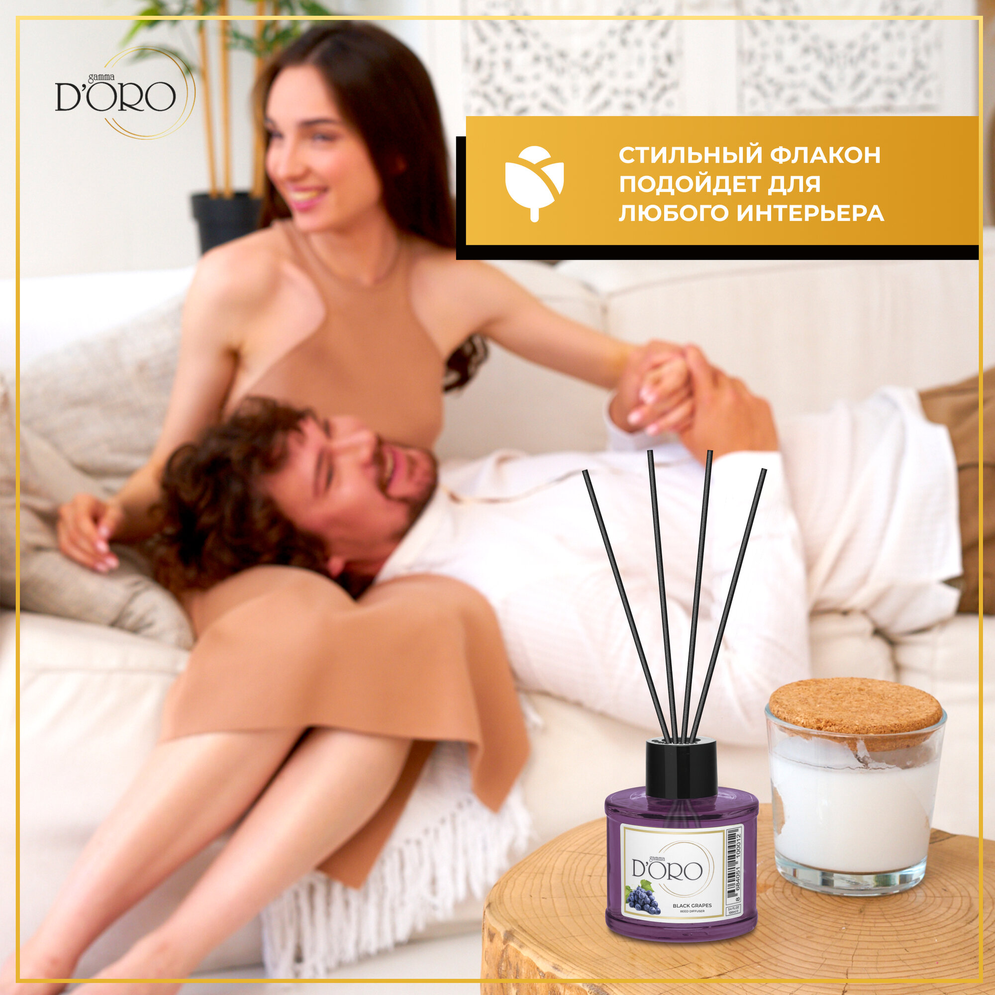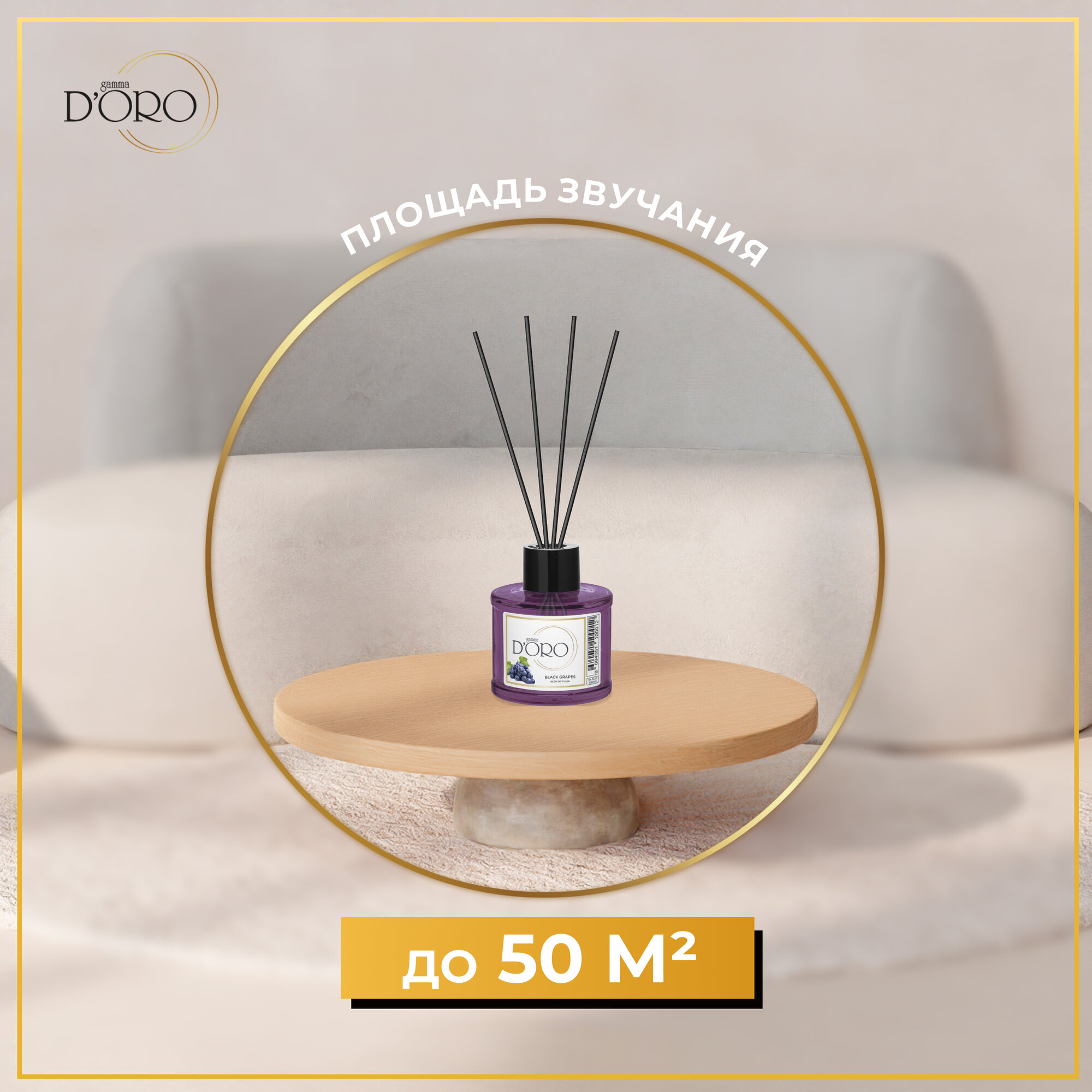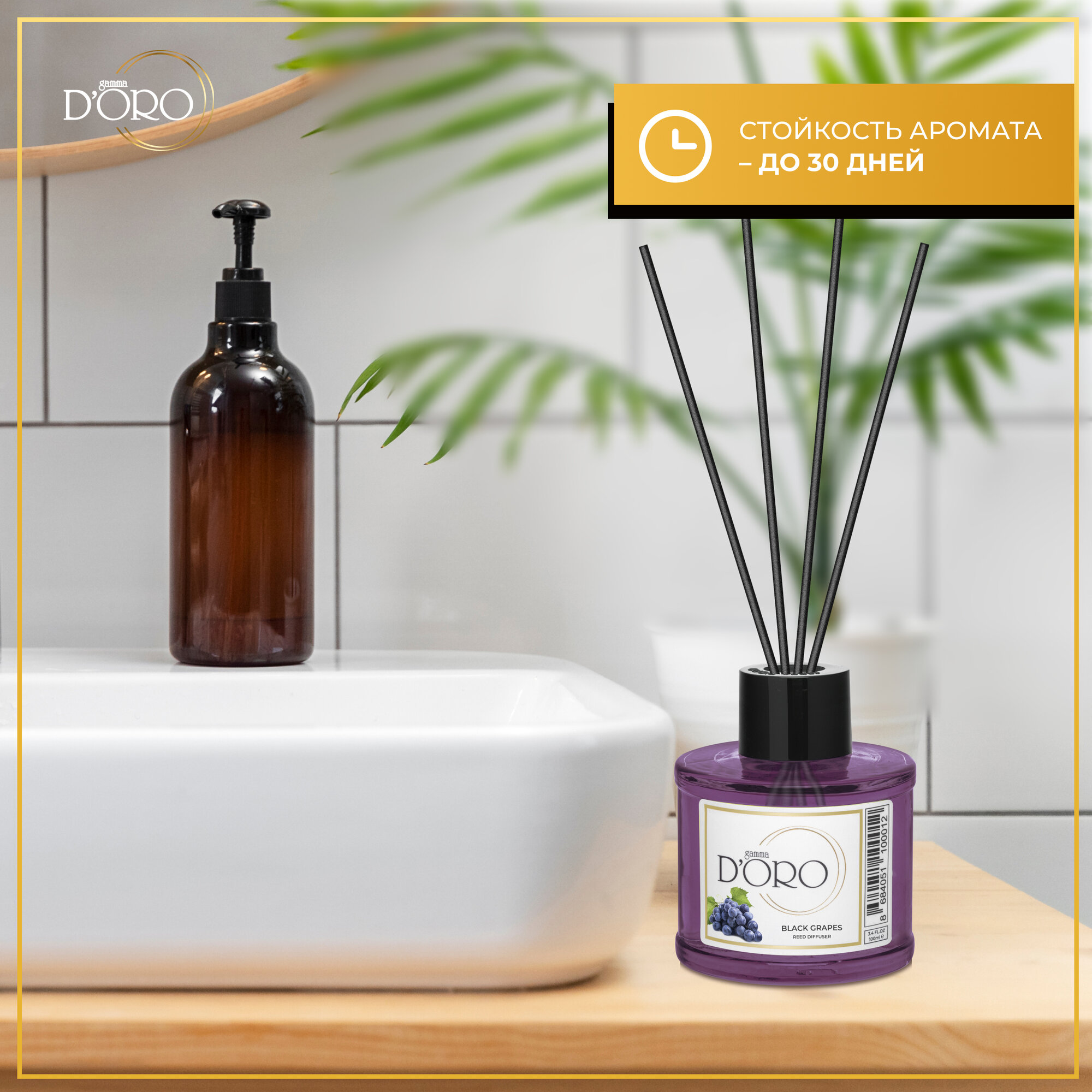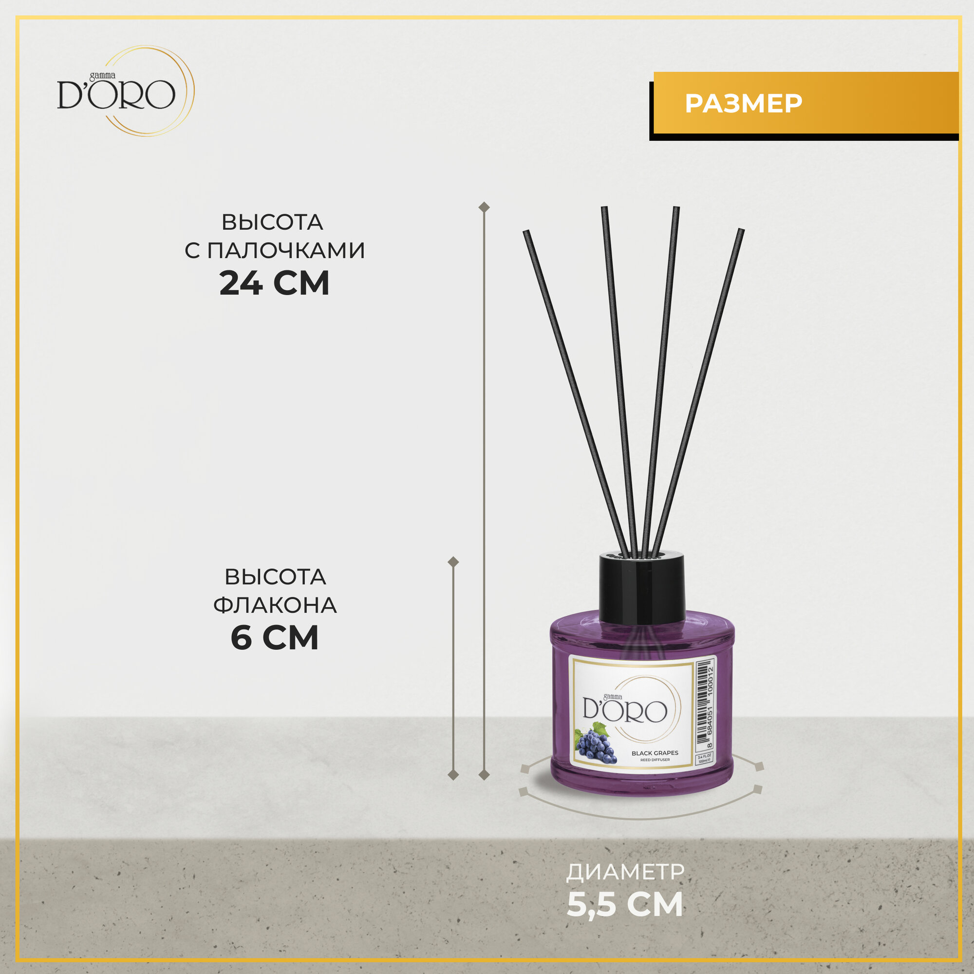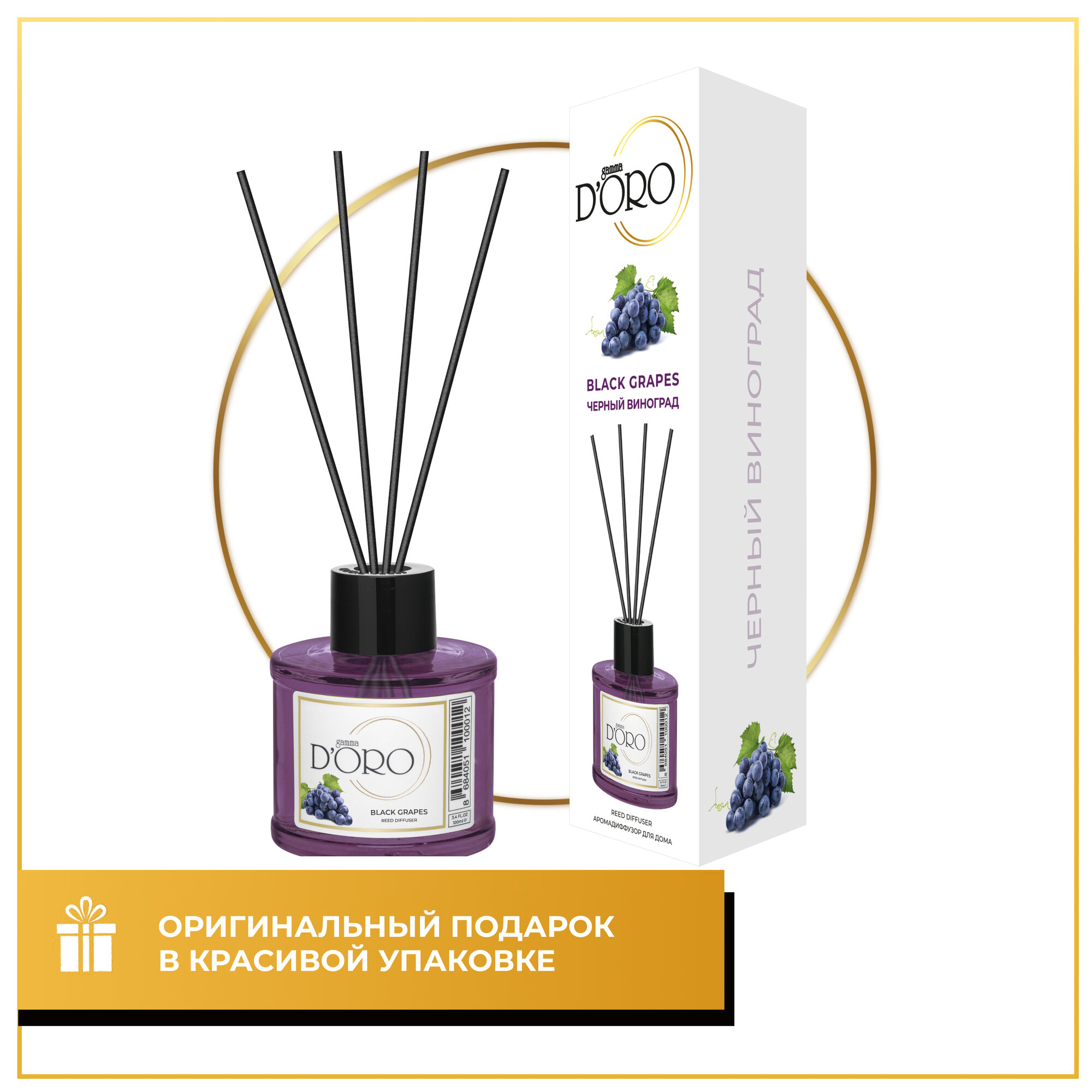 Ароматический диффузор для дома с палочками GAMMA D’ORO Черный виноград 100 мл