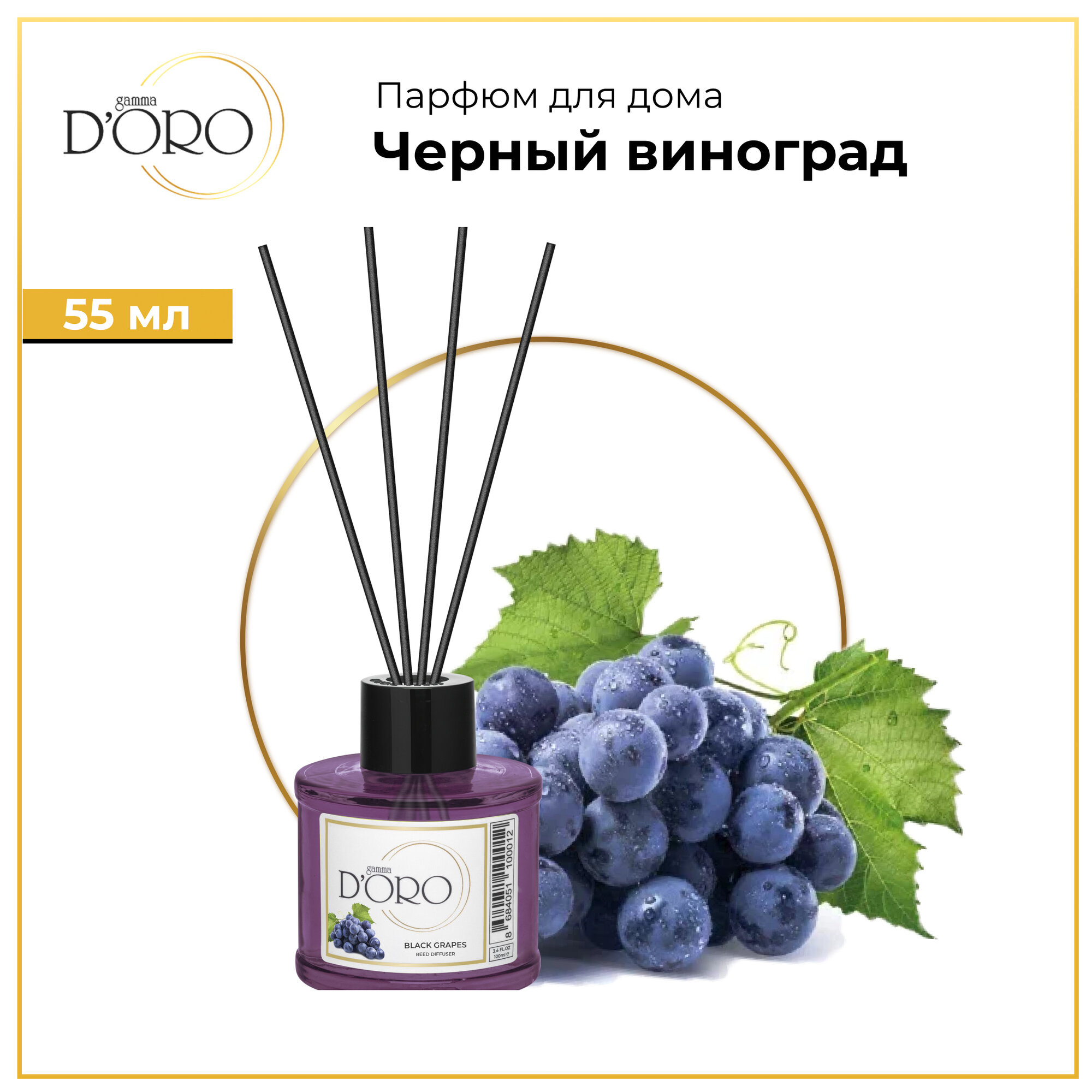 Купить Диффузор для дома Gamma D'Oro Черный виноград 55 мл, аромадиффузор с палочками, ароматизатор освежитель воздуха