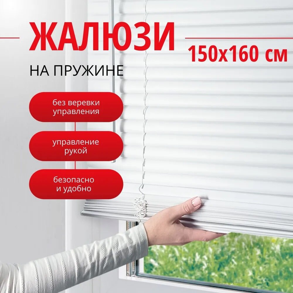 Жалюзи с пружинным механизмом (Cordless), "Эскар", пластик, белый, 150х160, 677150160
