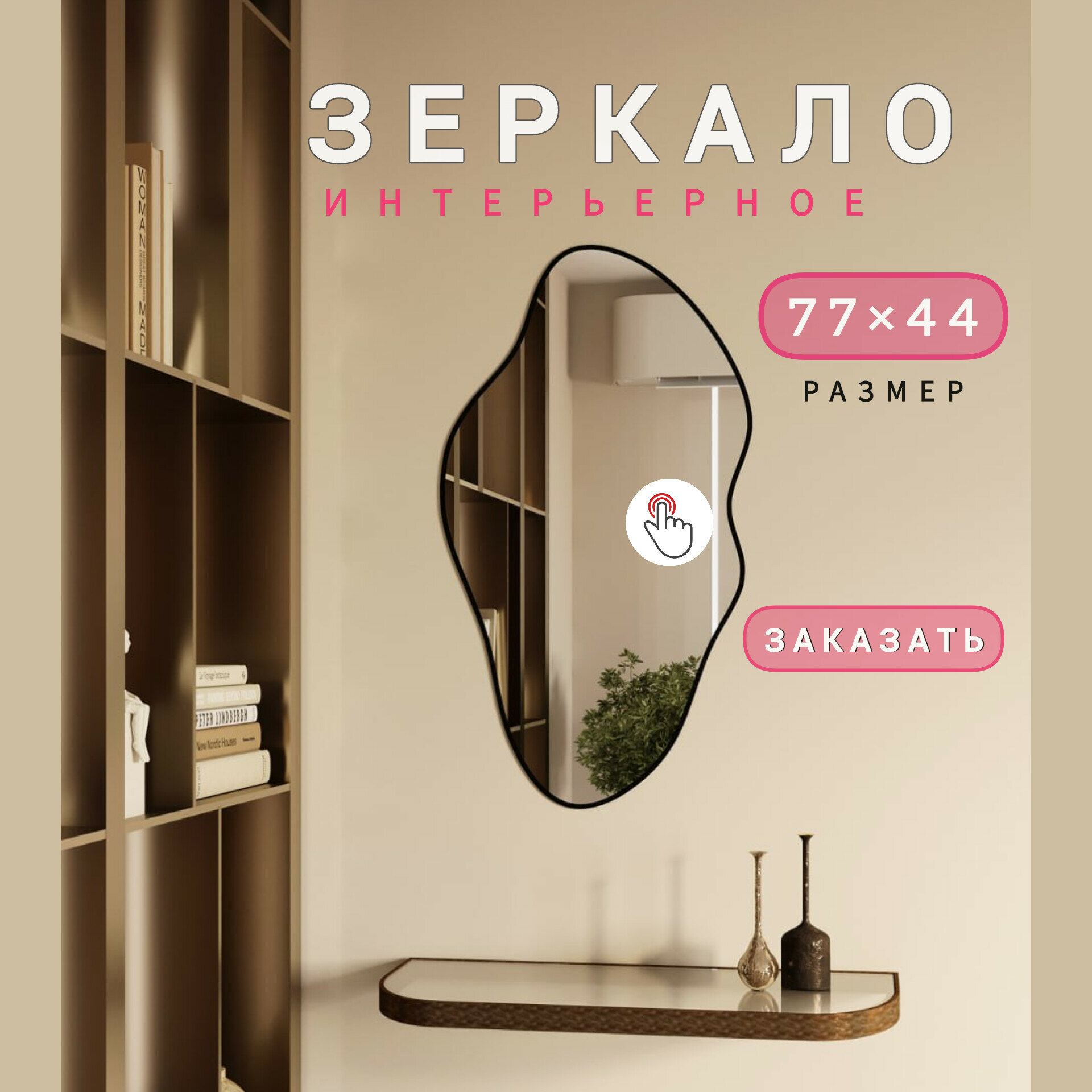 MSK мебель Зеркало интерьерное "Абстракция", 44 см х 77 см, 1 шт, черная рама