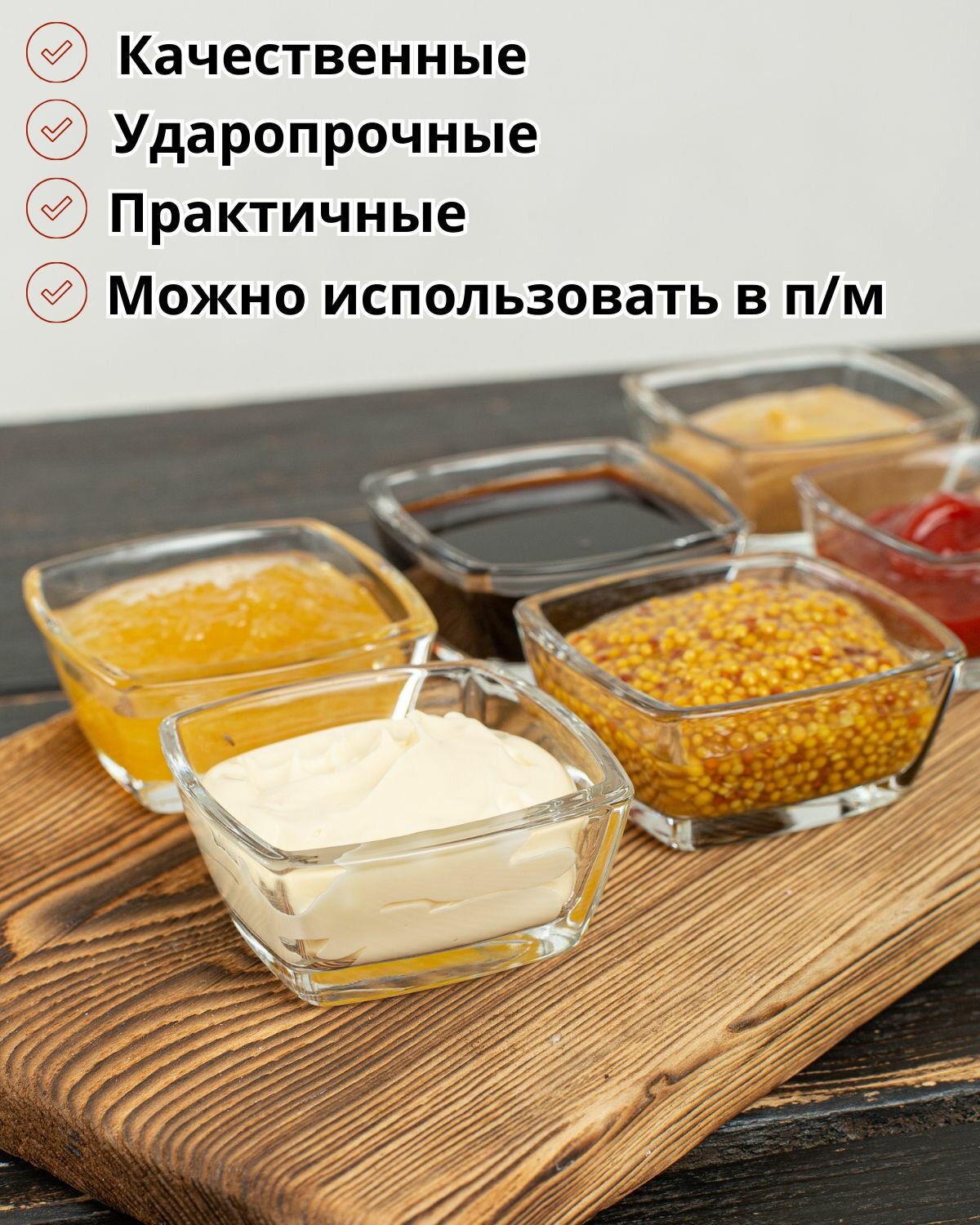 Соусник 57 мл стеклянный 66х66 мм Токио / Набор - 6 шт / Емкость для соуса интересное: