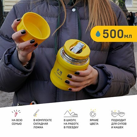 311-500 жёлтый Термос для еды вакуумный, бытовой, тм Арктика, 0.5 л