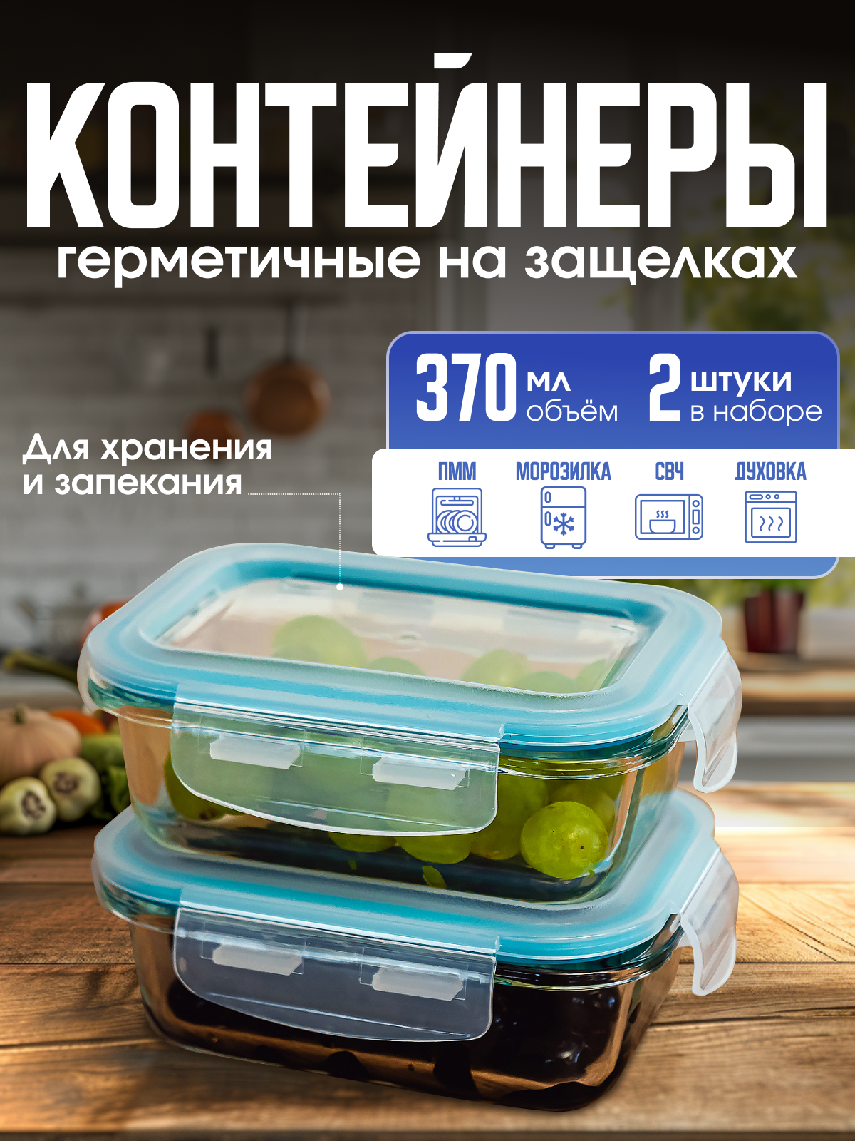 Набор герметичных стеклянных контейнеров объемом 370мл (набор из 2-х штук) интересное:
