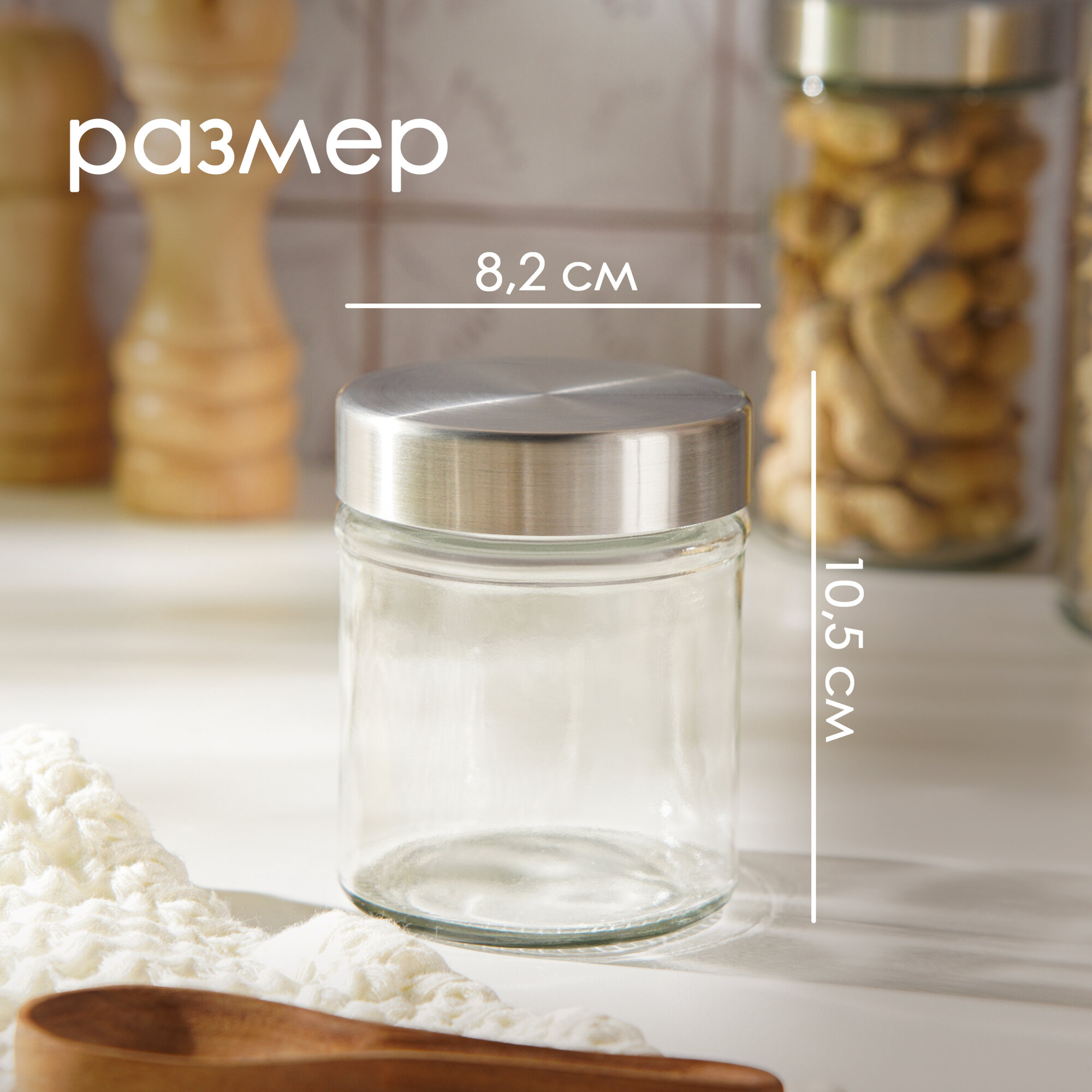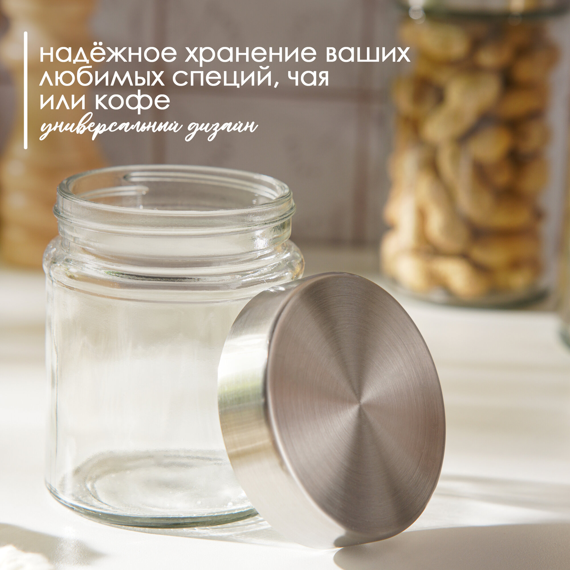 Банка для хранения сыпучих продуктов стеклянная с металлической крышкой Доляна «Премиум» 550мл