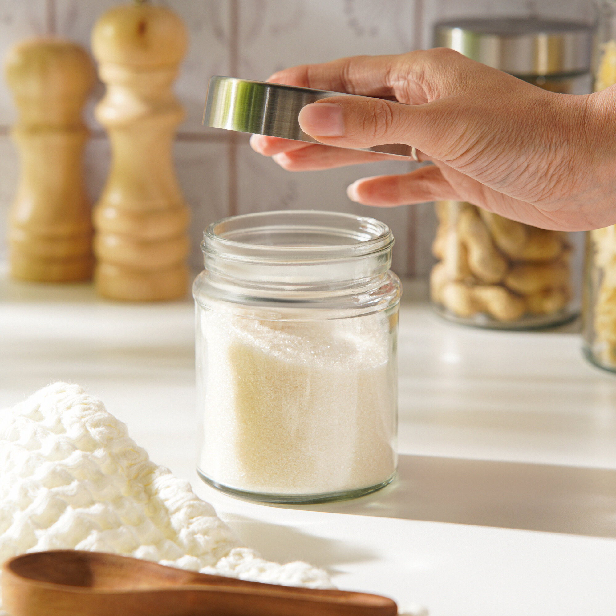 Банка для сыпучих "Идиллия", 50 мл, 4.2x5.2 см, с металлической крышкой, стекло, прозрачная