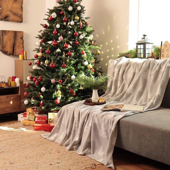 Новый год. Плед Экономь и Я "Ёлочки" 150*180см, пл.160 г/м2, 100% п/э