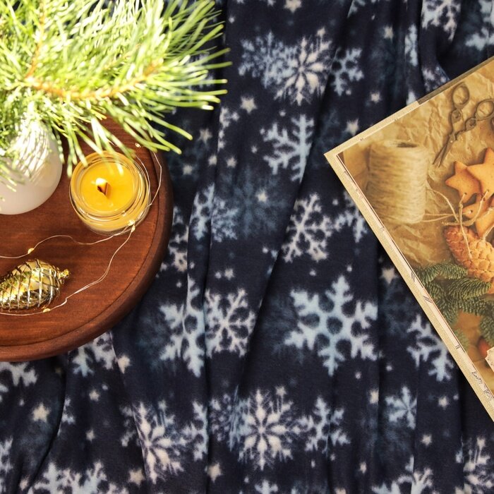 Новый год. Плед Экономь и Я "Снежинки" 150*180 см, пл.160 г/м2, 100% п/э