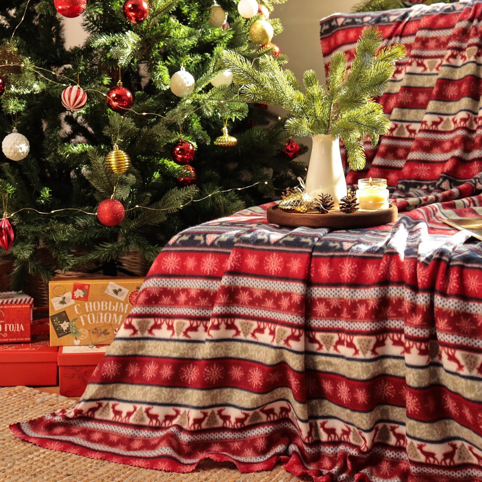 Купить Новый год. Плед Экономь и Я "Скандинавия" 150*130см, пл.160 г/м2, 100% п/э