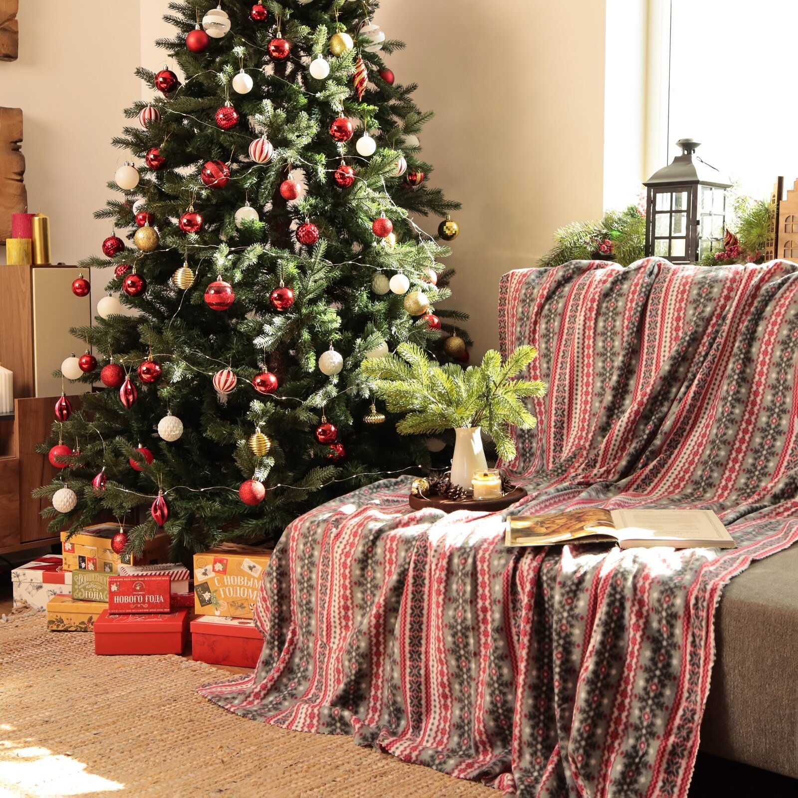 Плед новогодний "Орнамент" 150*130см, пл.160 г/м2, 100% п/э, сезон: весна