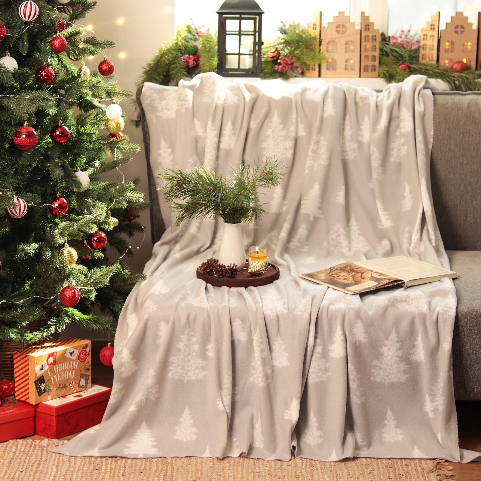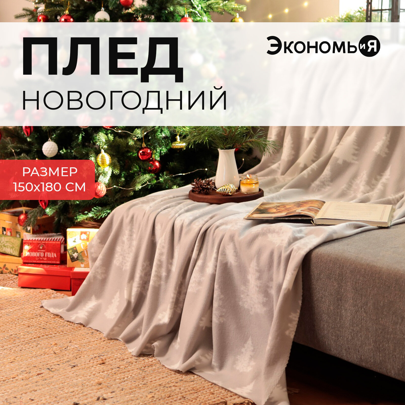 Купить Новый год. Плед Экономь и Я "Ёлочки" 150*180см, пл.160 г/м2, 100% п/э