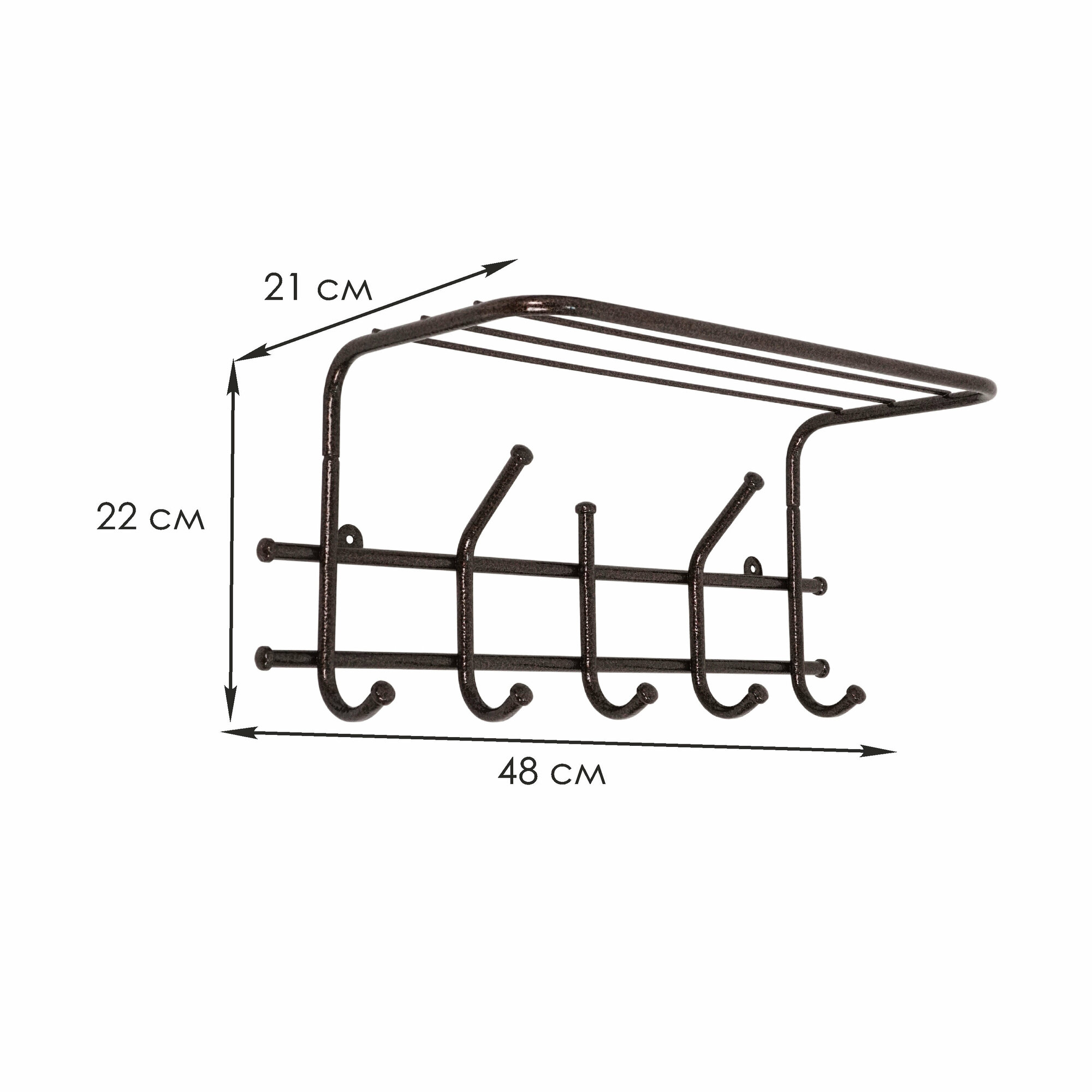 Вешалка настенная с полкой ЗМИ Эра 5, 5 крючков, 48 x 21 x 22 см, черная