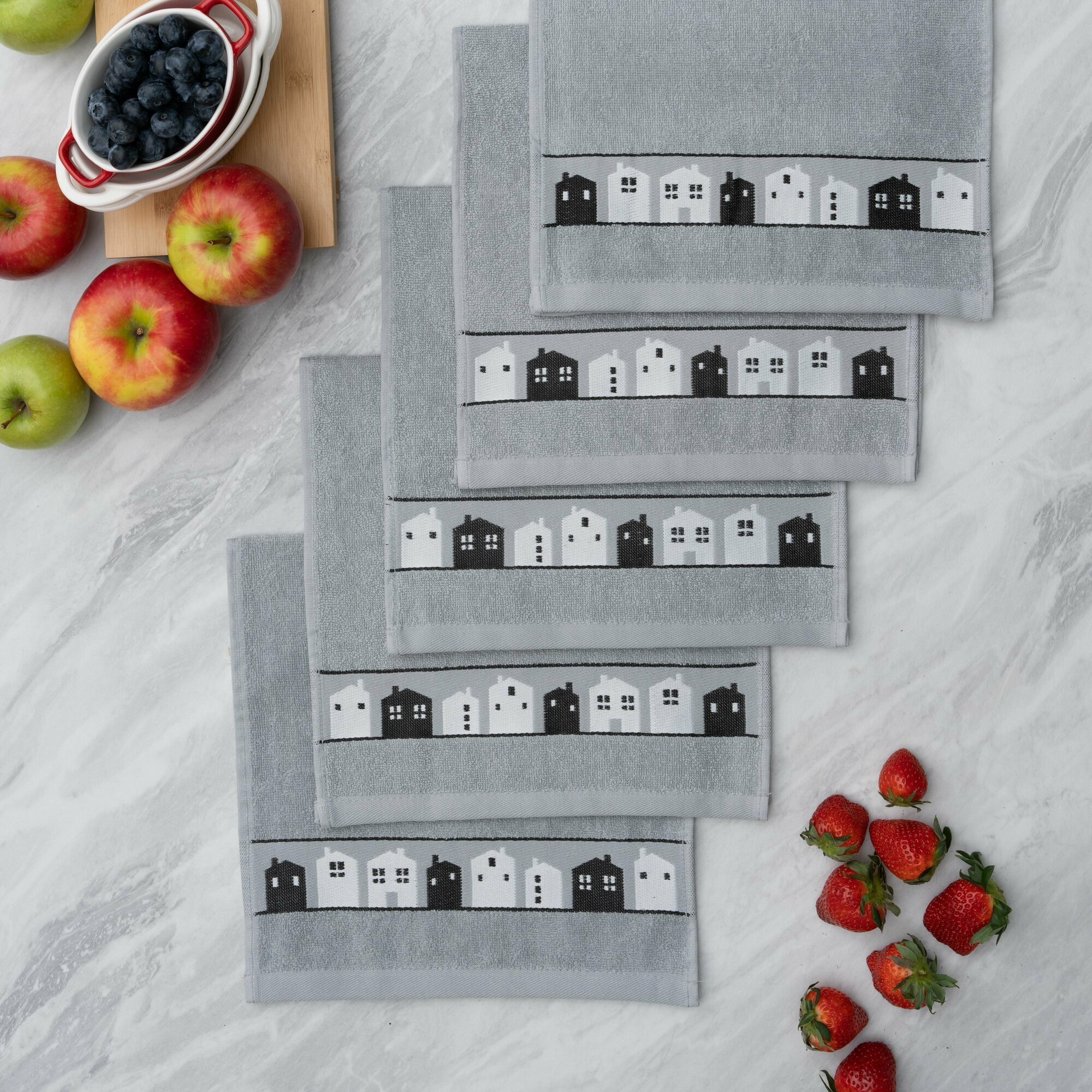 Купить Полотенца махровые кухонные 30х60 см, набор 5 шт, Китчен, городок / серые