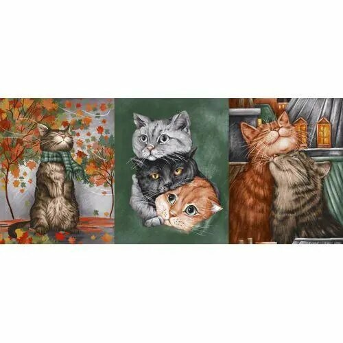 Кухонные полотенца Набор 3шт. "Коты авторские" из рогожки 50x60 Россия