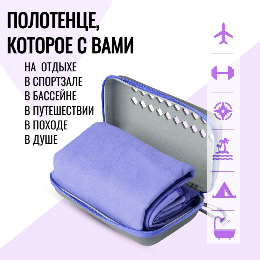 СохранитьПолотенце из микрофибры спортивное пляжное для бассейна быстросохнущее, фиолетовый, 76х150 см интересное: