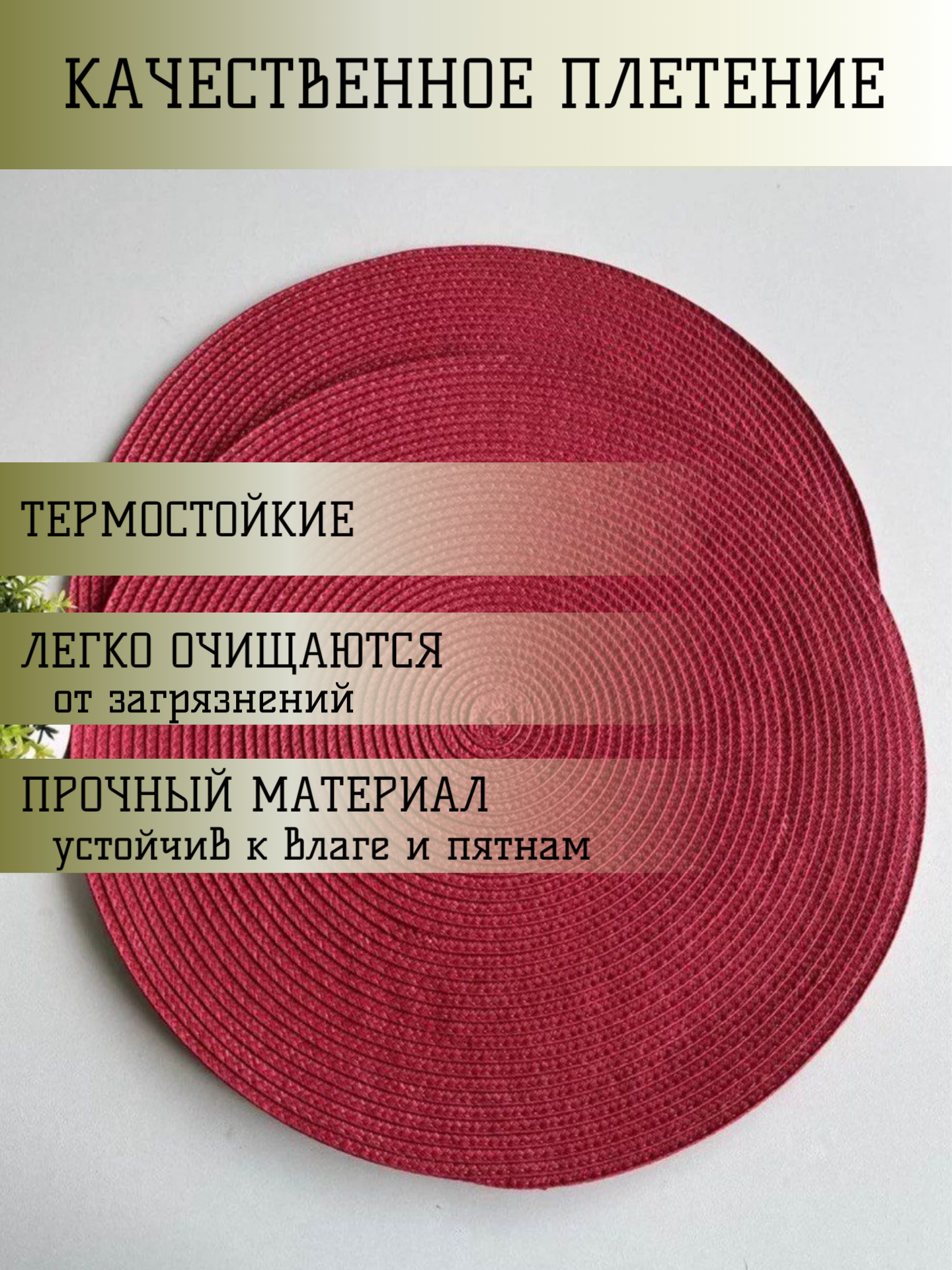 Плетеные салфетки на стол «Charmistry», 38см, 2шт, плейсматы зеленые